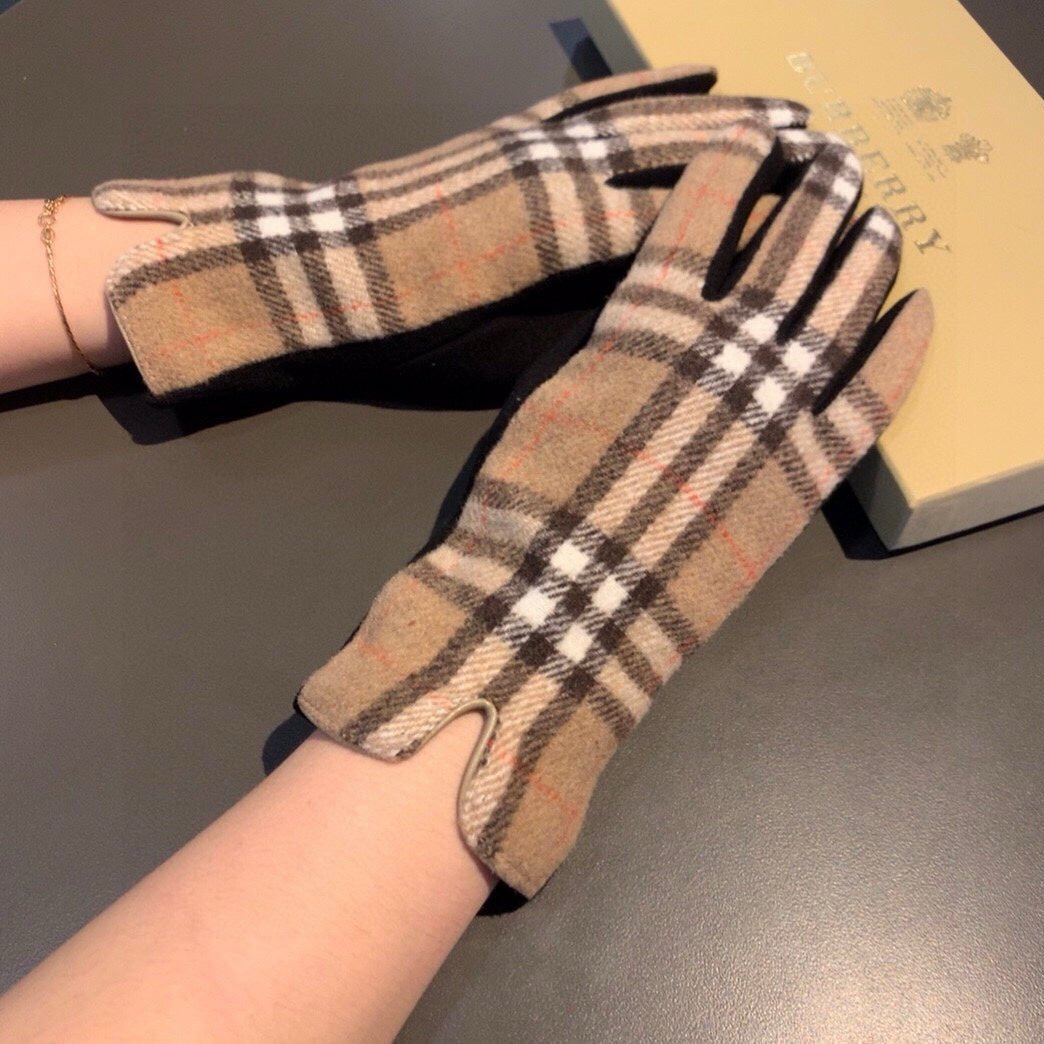 GLOVES IN CAMEL BEIGE AND BLACK WOOL 448244