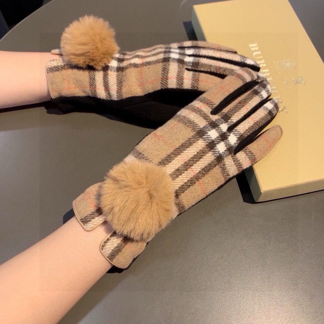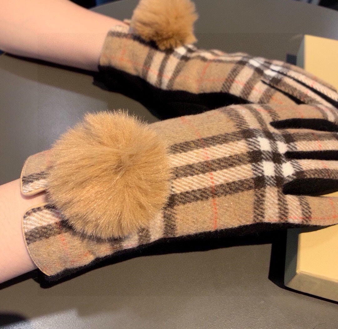 GLOVES IN CAMEL BEIGE AND BLACK WOOL WITH RABBIT FUR 448246