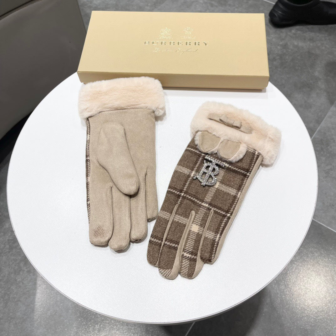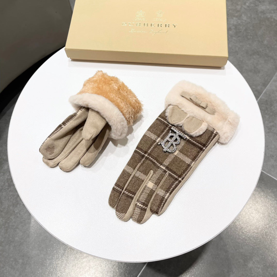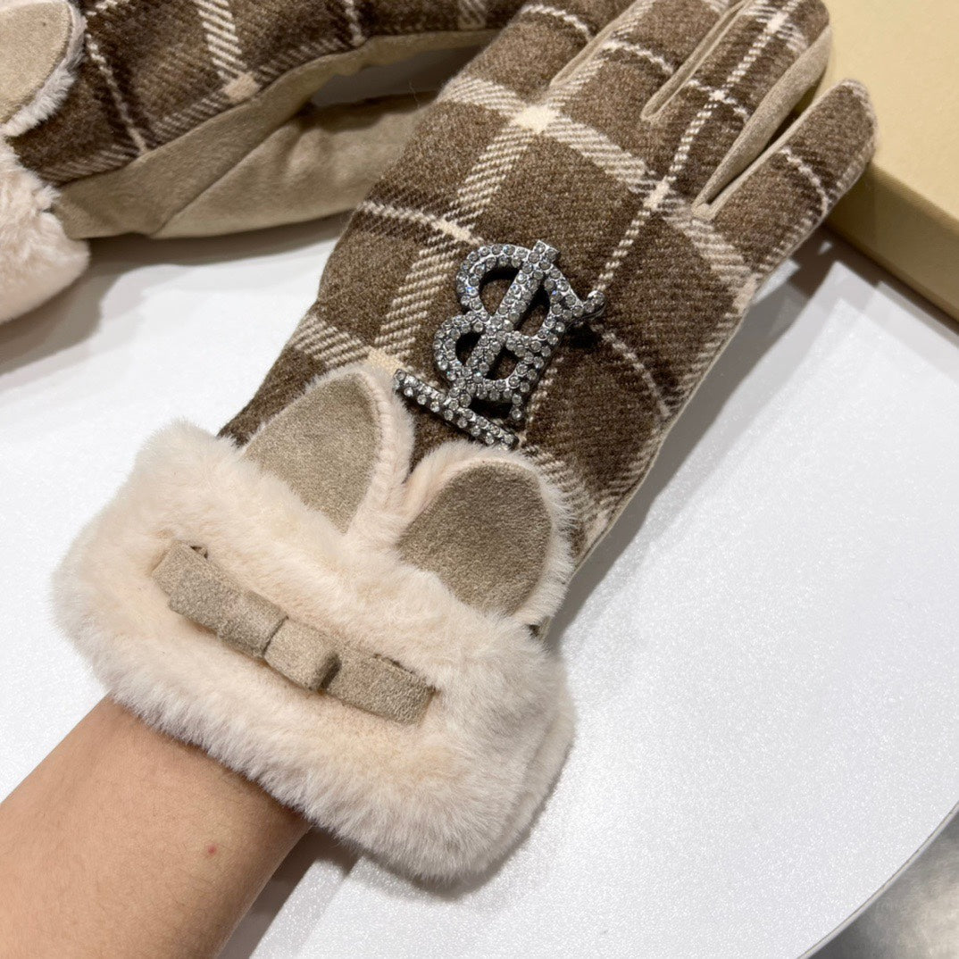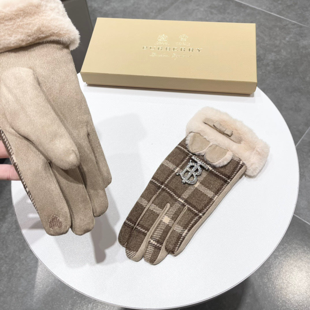 GLOVES IN MEDIUM BROWN WOOL AND RABBIT FUR 158884