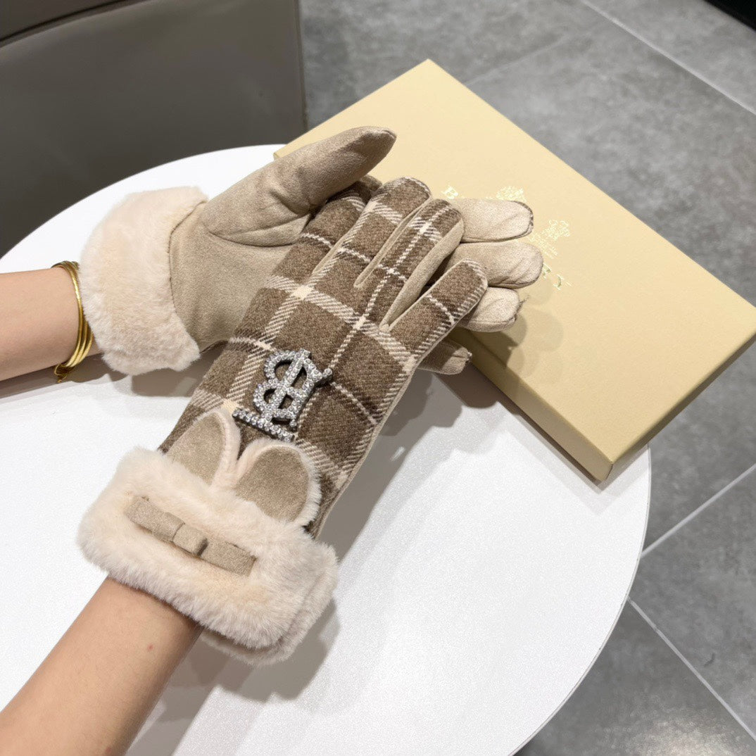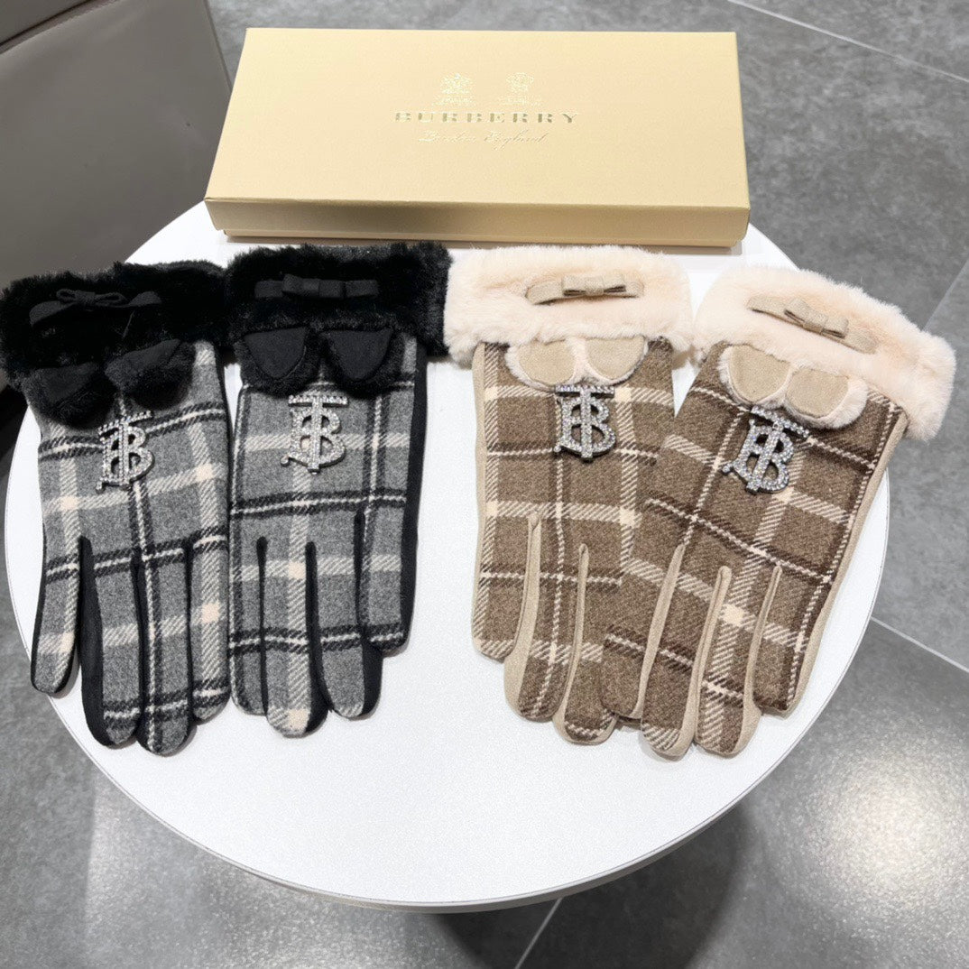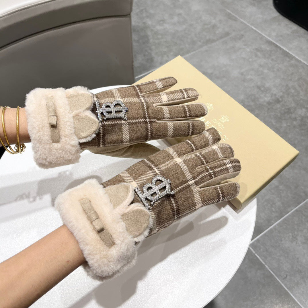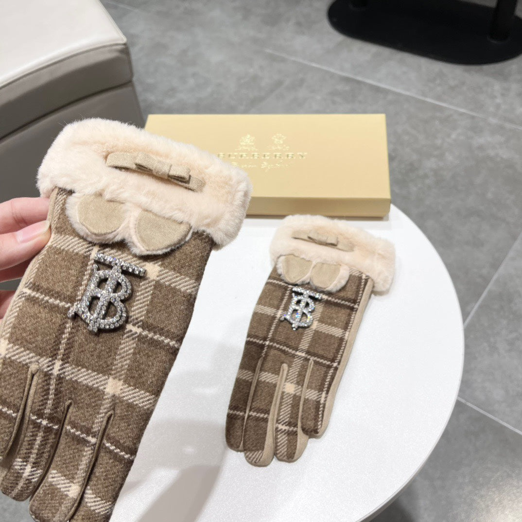GLOVES IN MEDIUM BROWN WOOL AND RABBIT FUR 158884