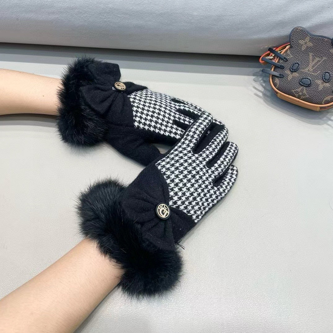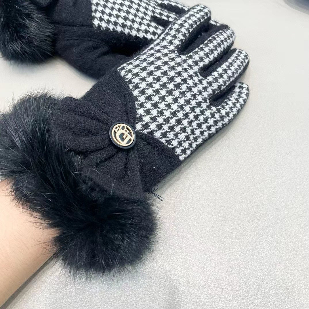 GLOVES WITH BOW IN BLACK MIX WHITE WOOL AND RABBIT FUR 453759