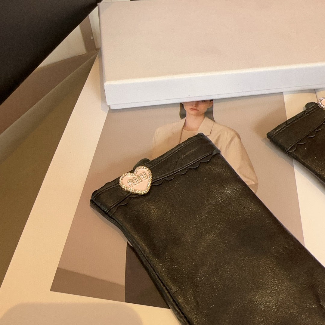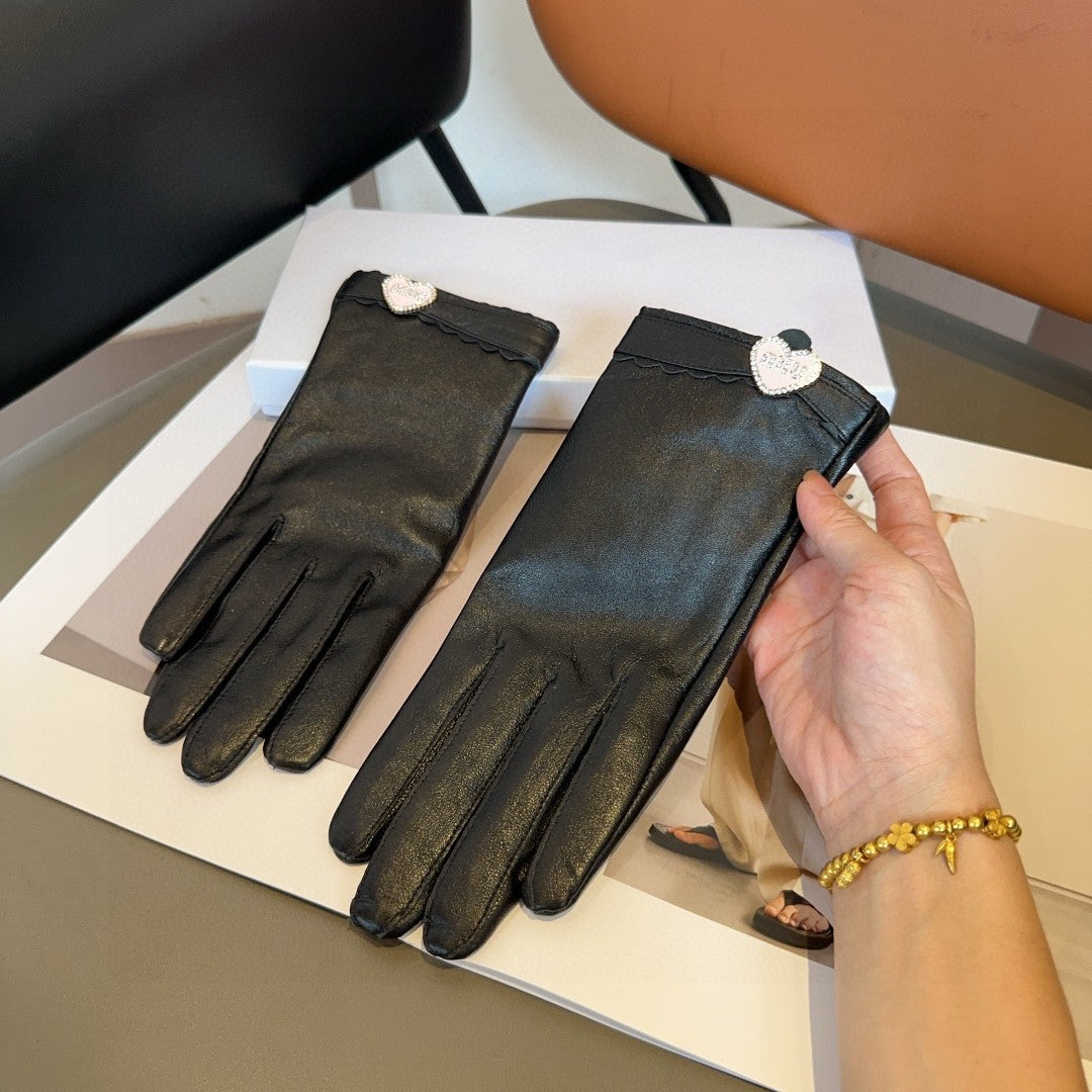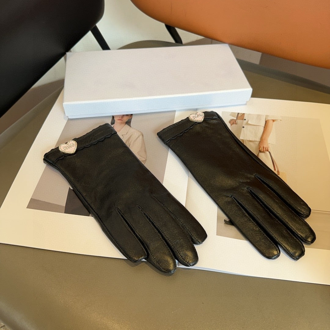 GLOVES WITH HEART ICON IN BLACK LAMBSKIN 465039