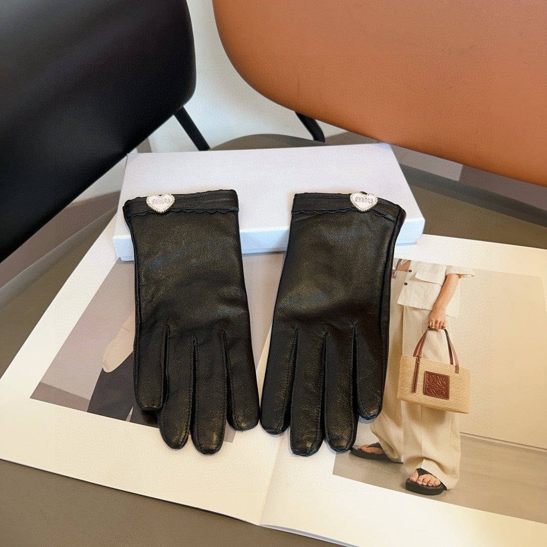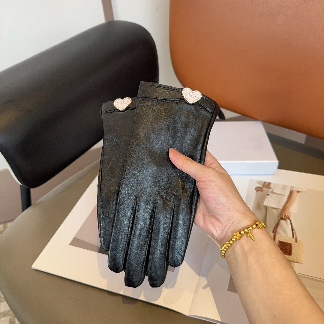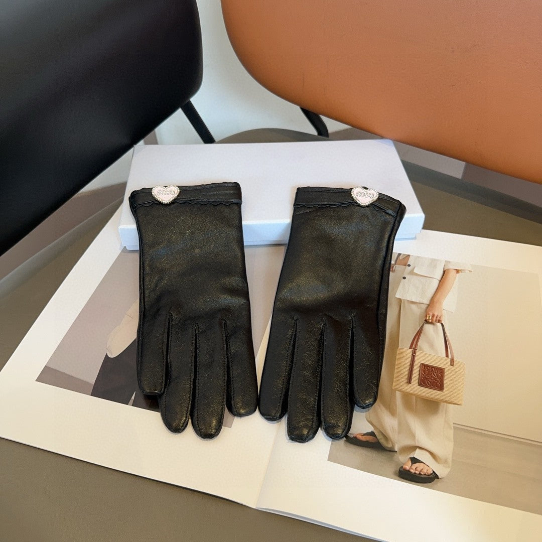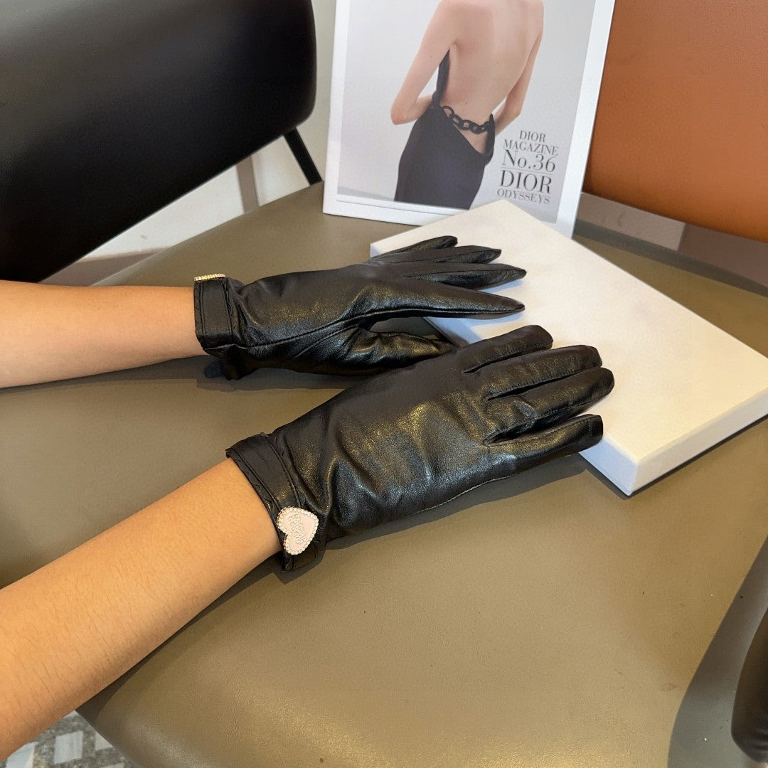 GLOVES WITH HEART ICON IN BLACK LAMBSKIN 465039