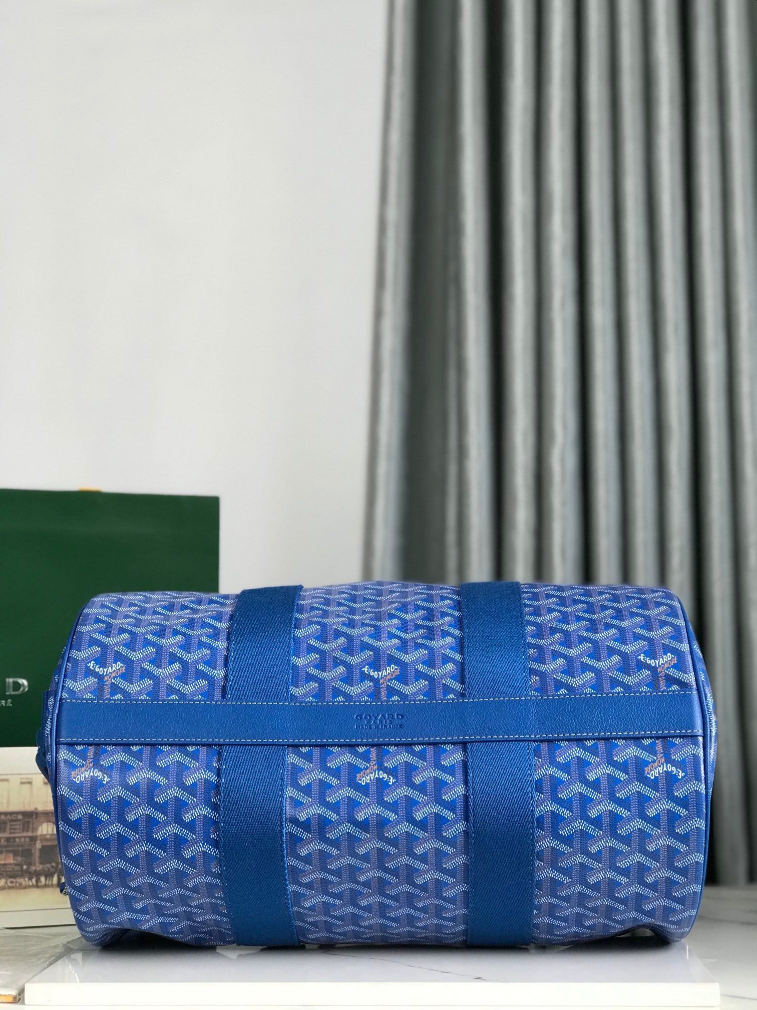 Goyard Barrel 40 Sports Bag Blue Canvas & Calfskin
