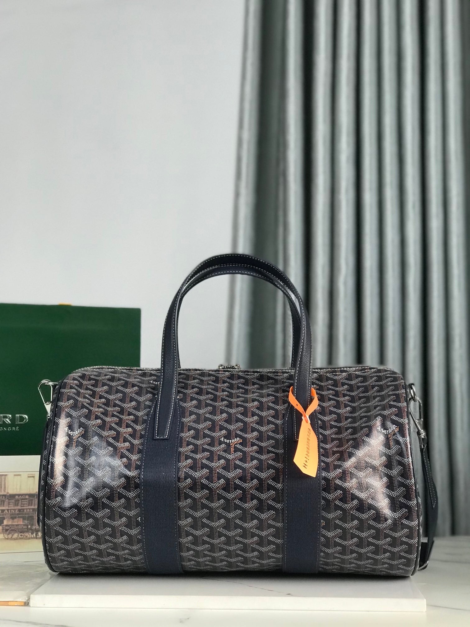 Goyard Barrel 40 Sports Bag Navy Blue Canvas & Calfskin