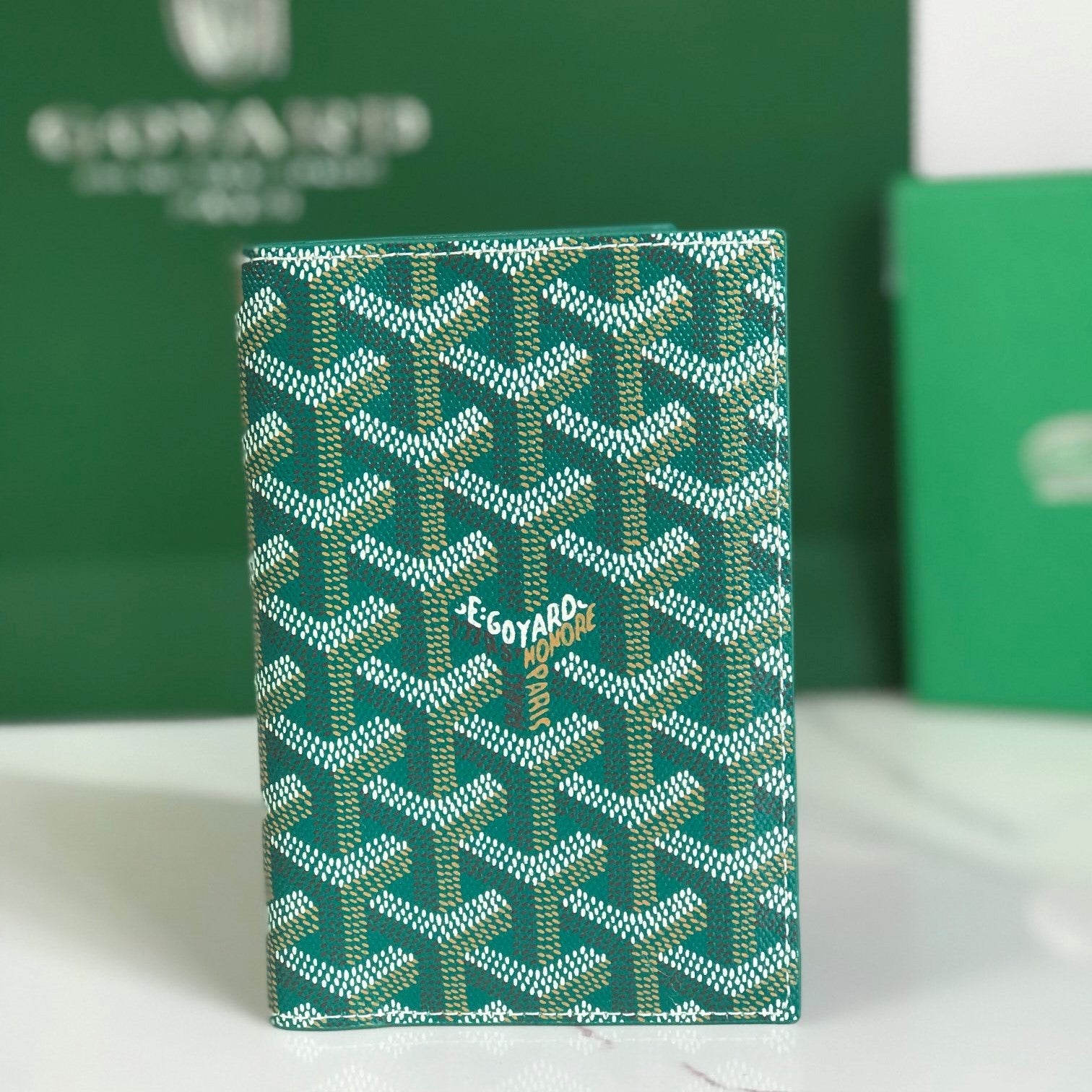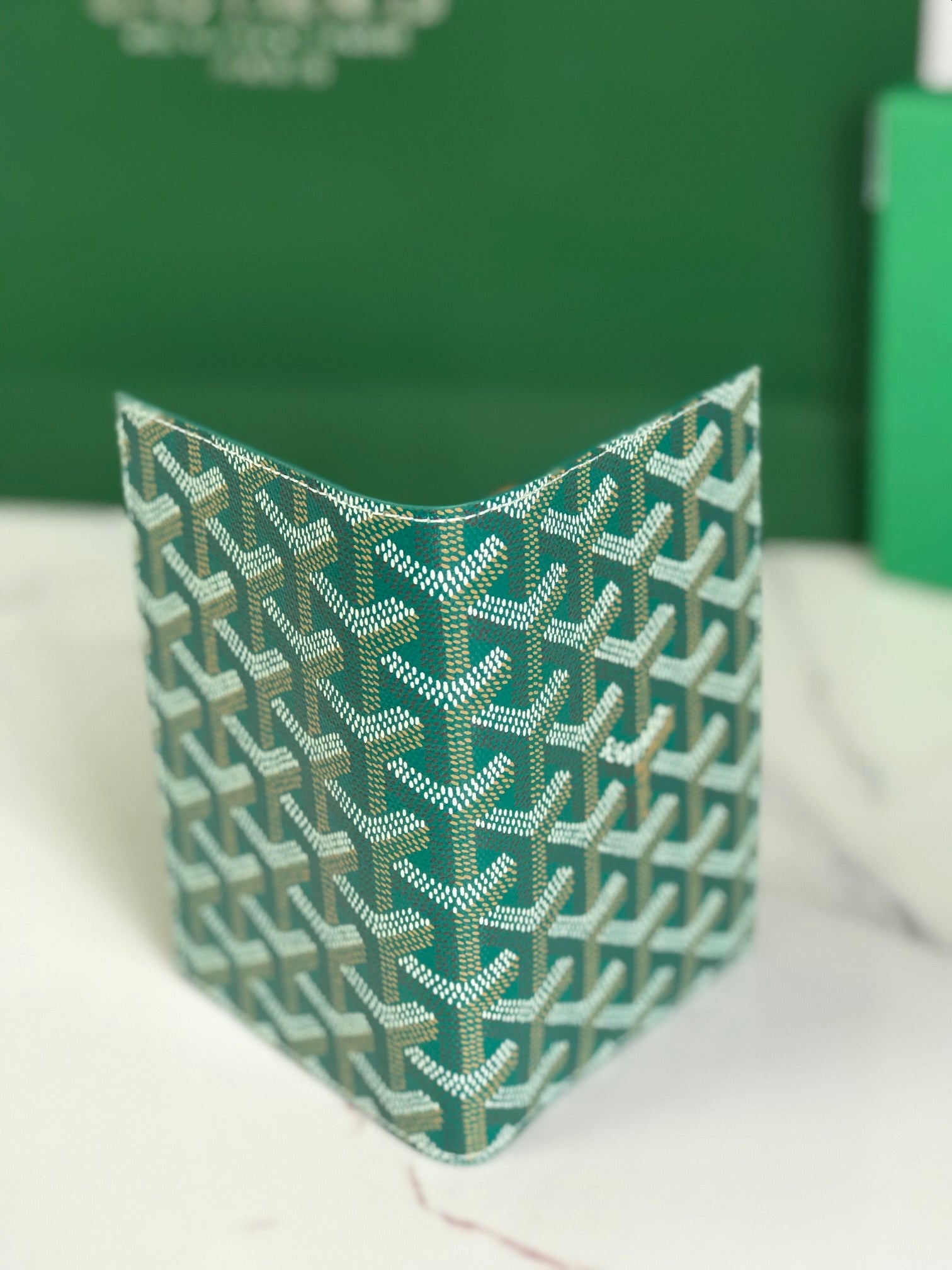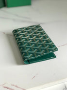 Goyard Grenelle Passport Cover 10cm Green Canvas & Cafskin
