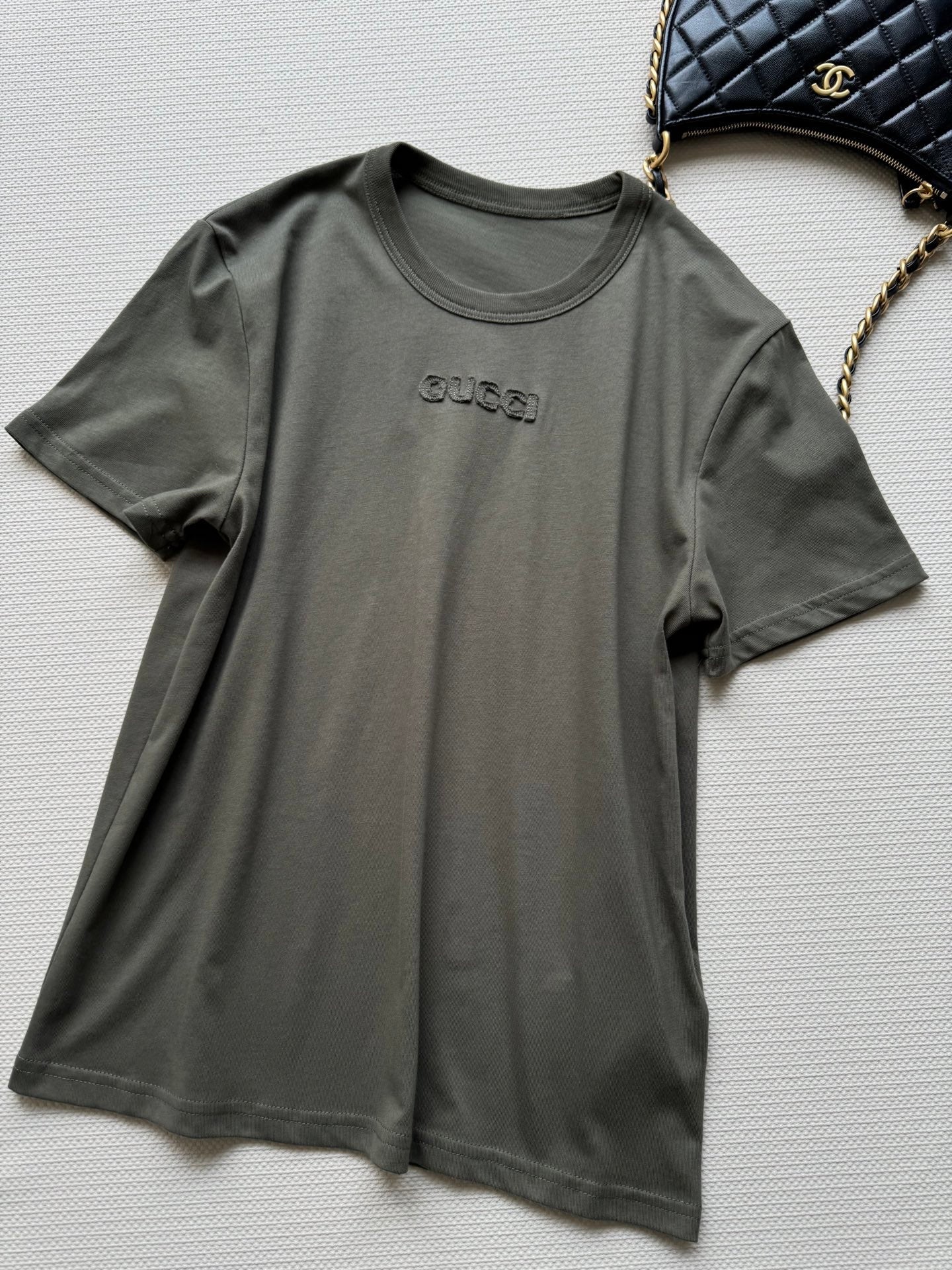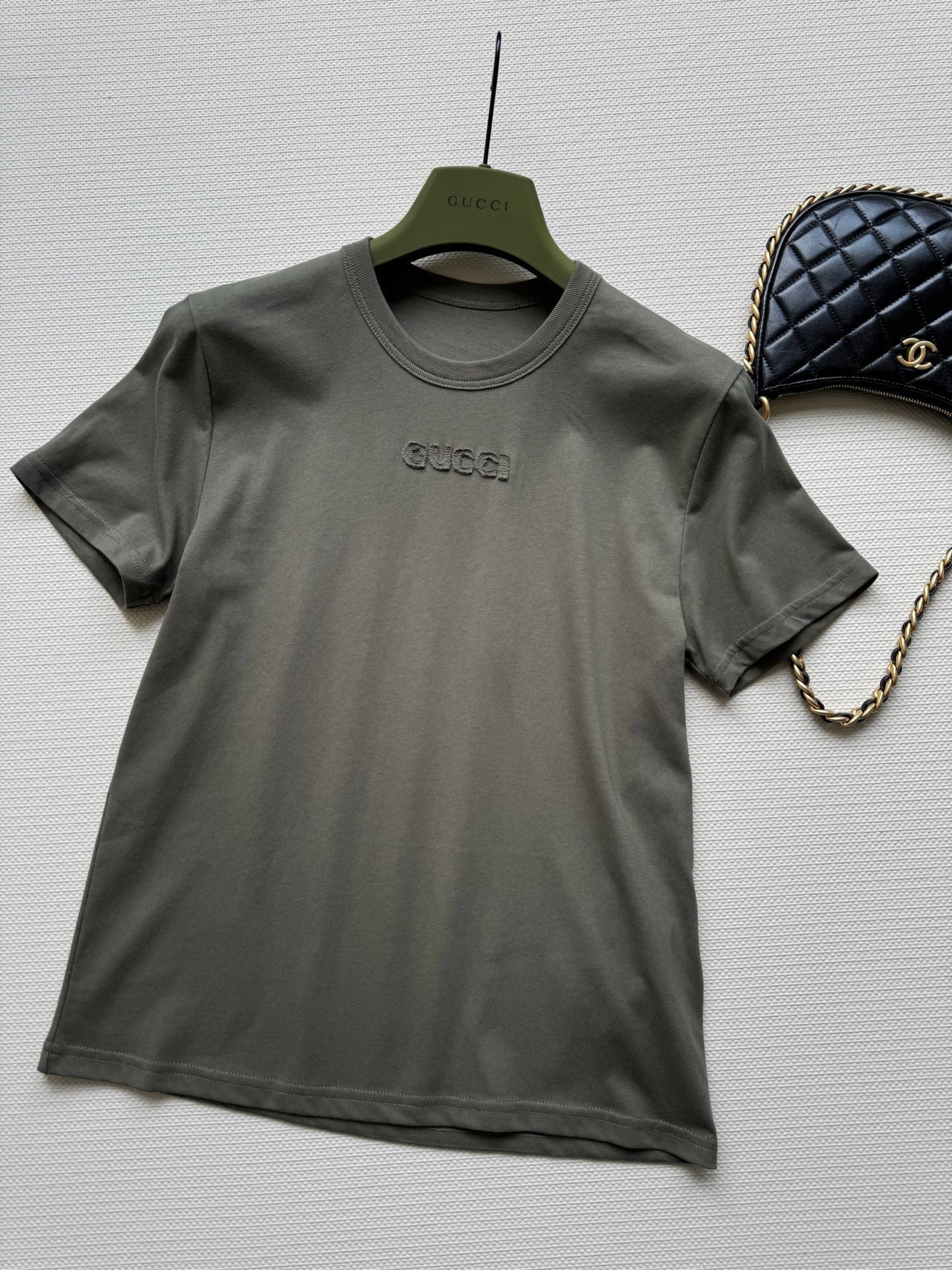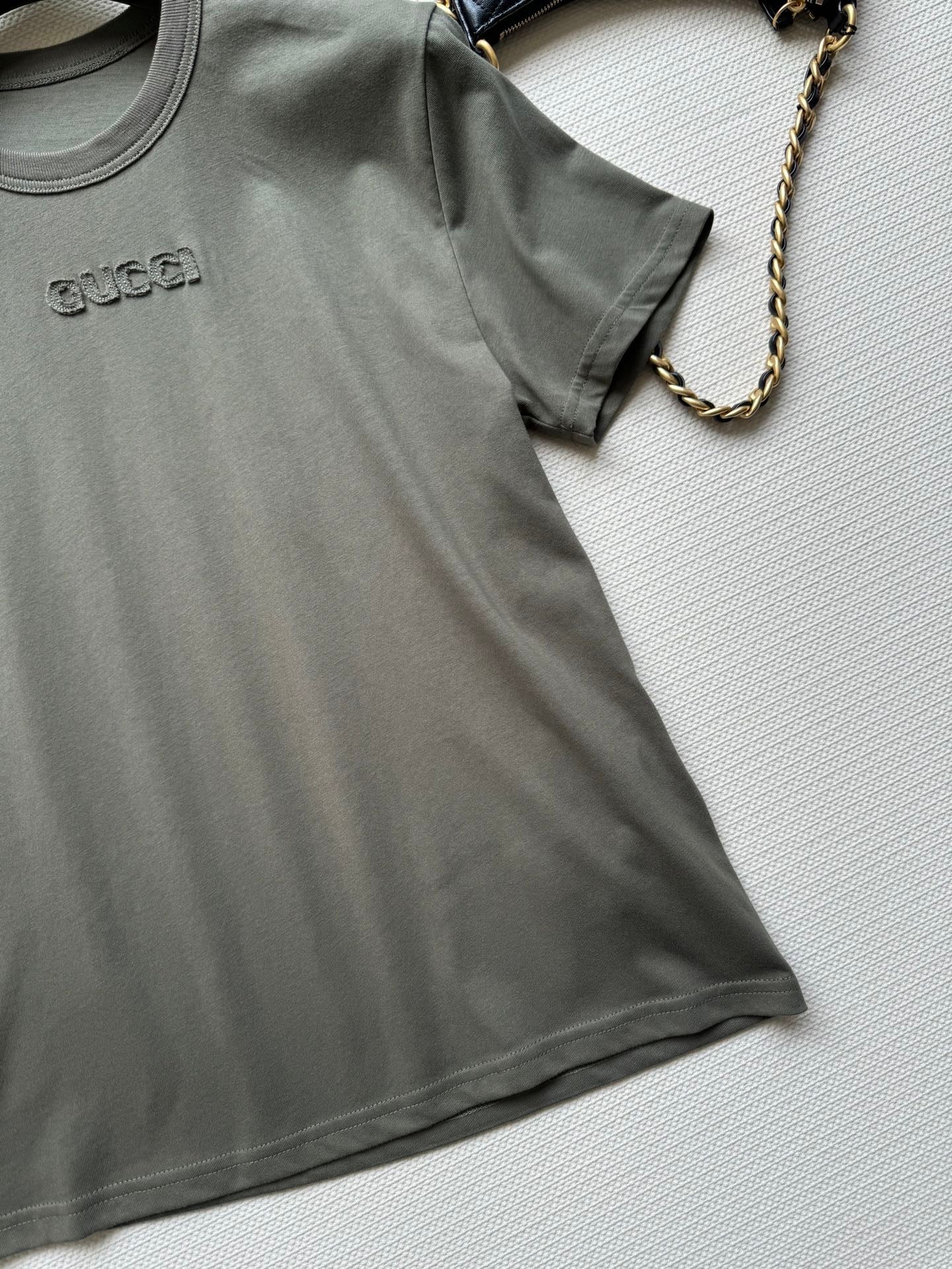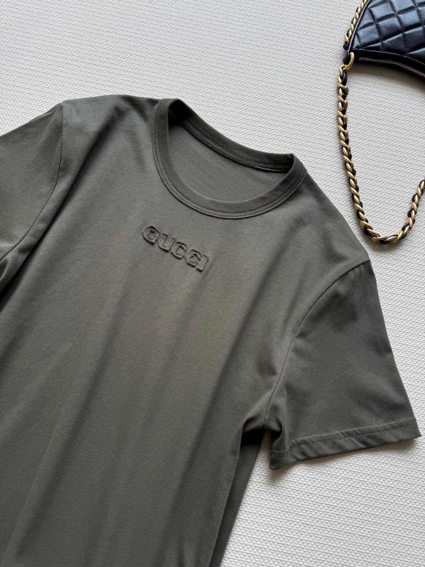 Gucci 2025 Embroidered Jersey T-shirt Dark Green Cotton