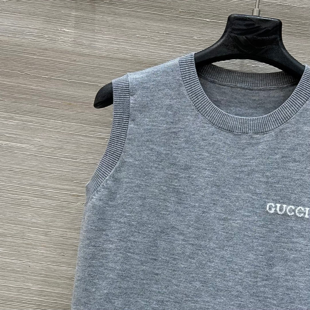 Gucci 2025 Logo Embroidered Knitted Vest Top Gray Wool