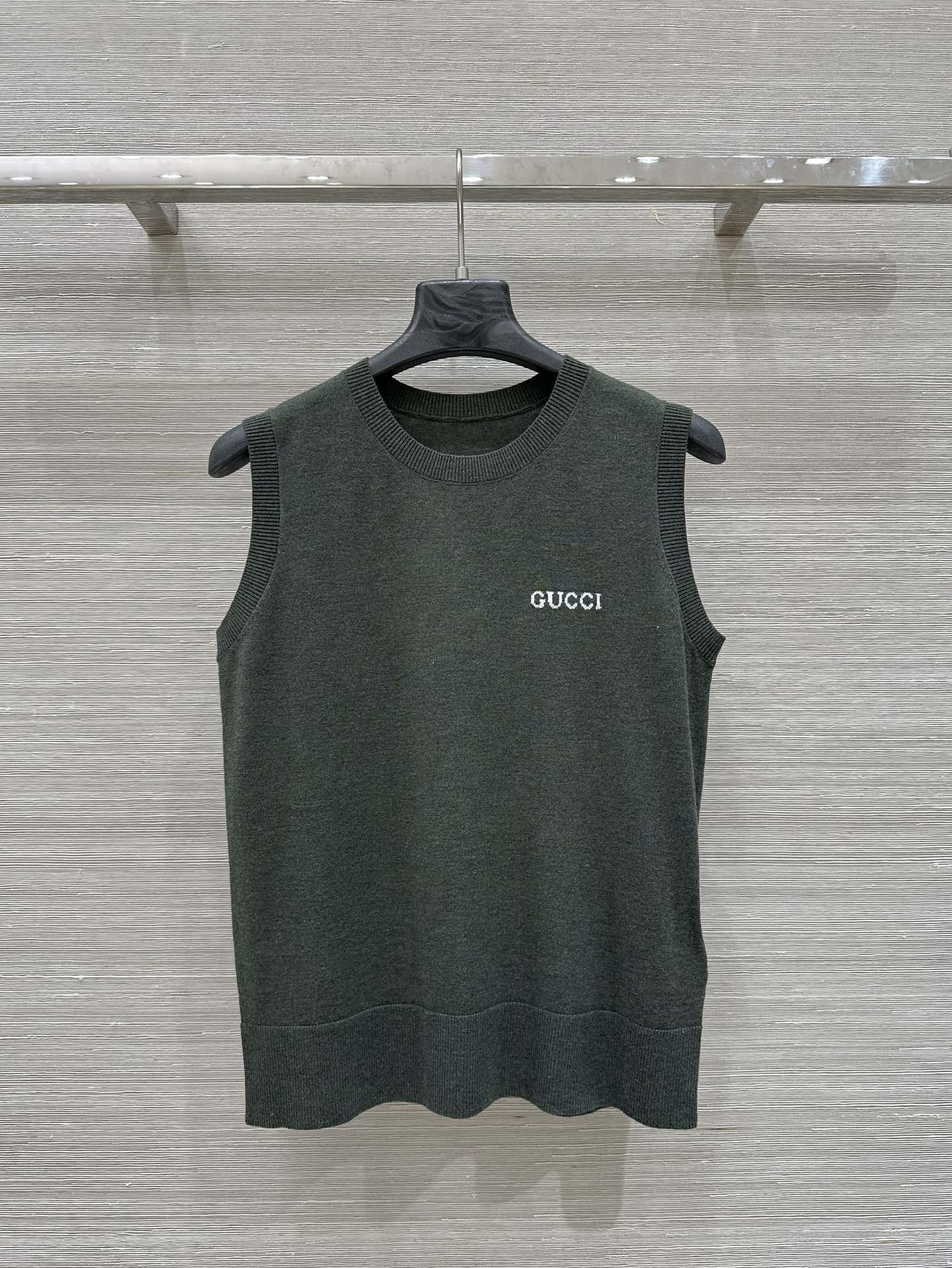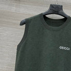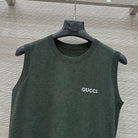 Gucci 2025 Logo Embroidered Knitted Vest Top Green Wool