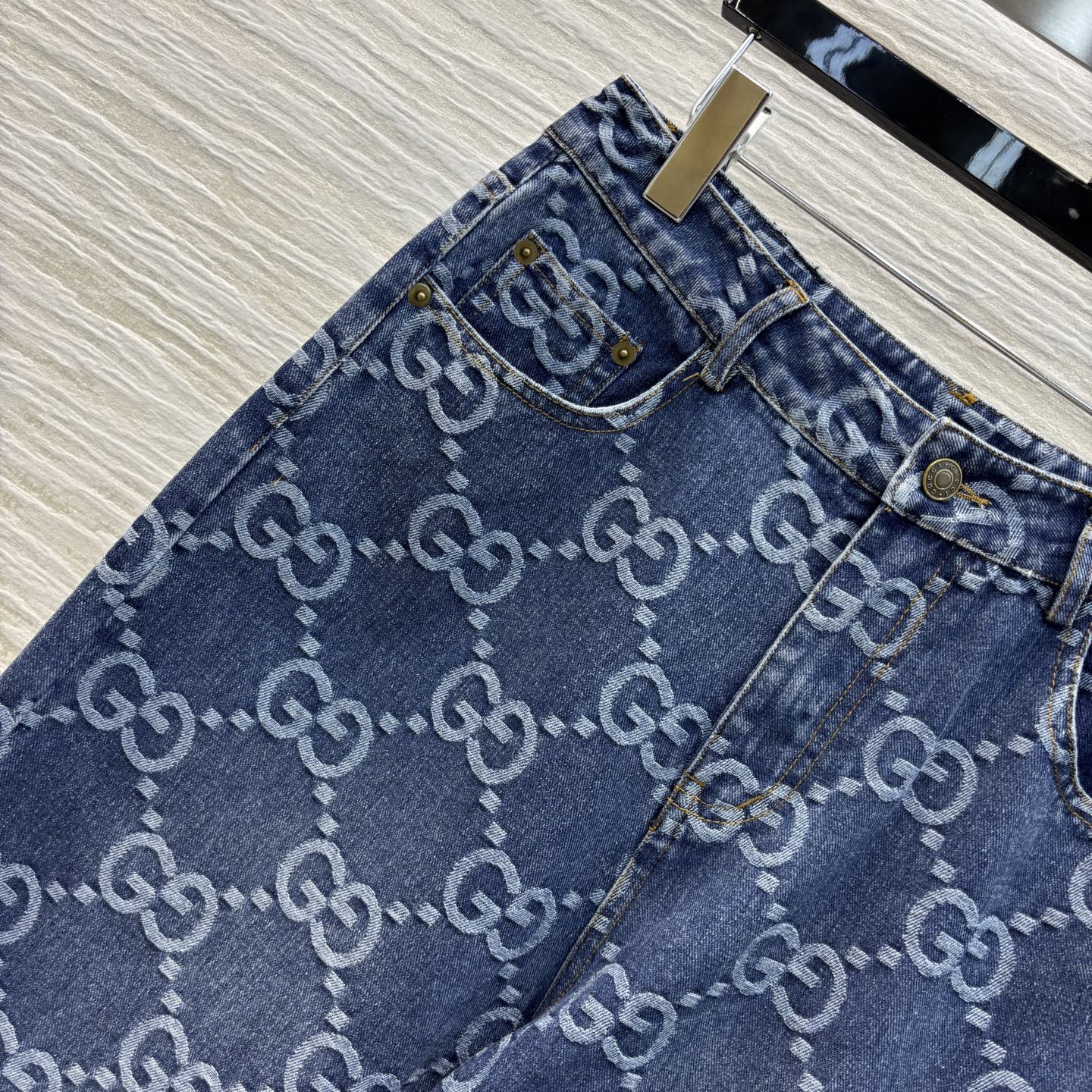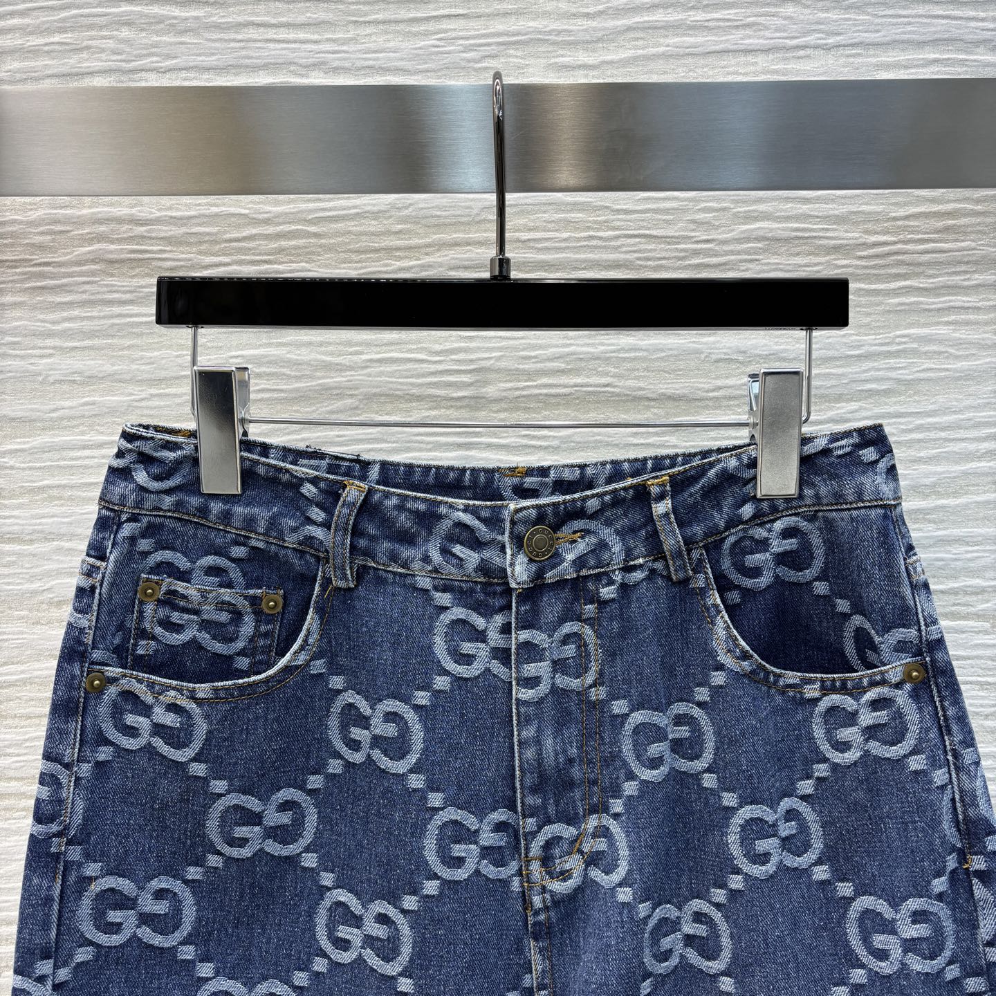 Gucci 2025 Logo Jacquard Straight Jeans Blue Cotton