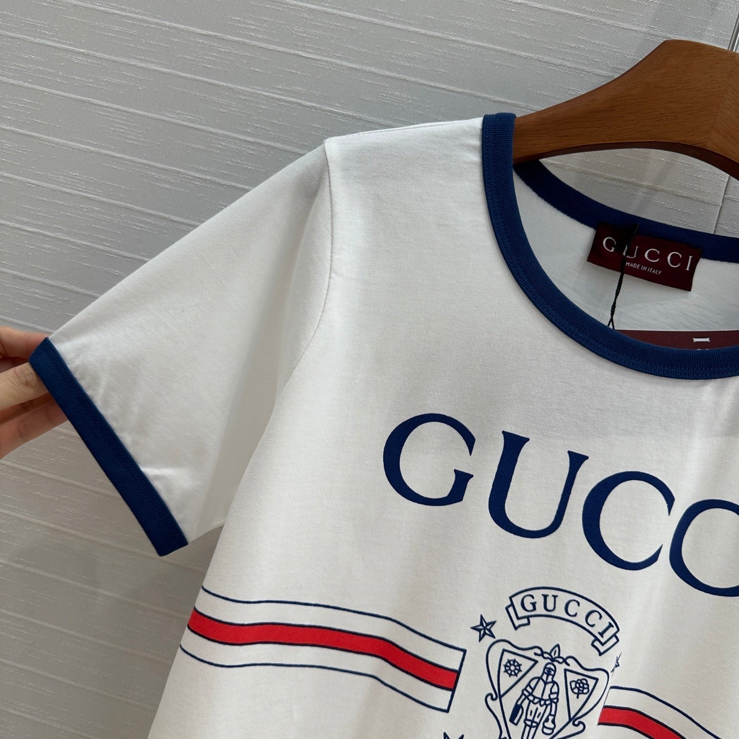 Gucci 25 Blue Letter Short-sleeved T-shirt White Cotton