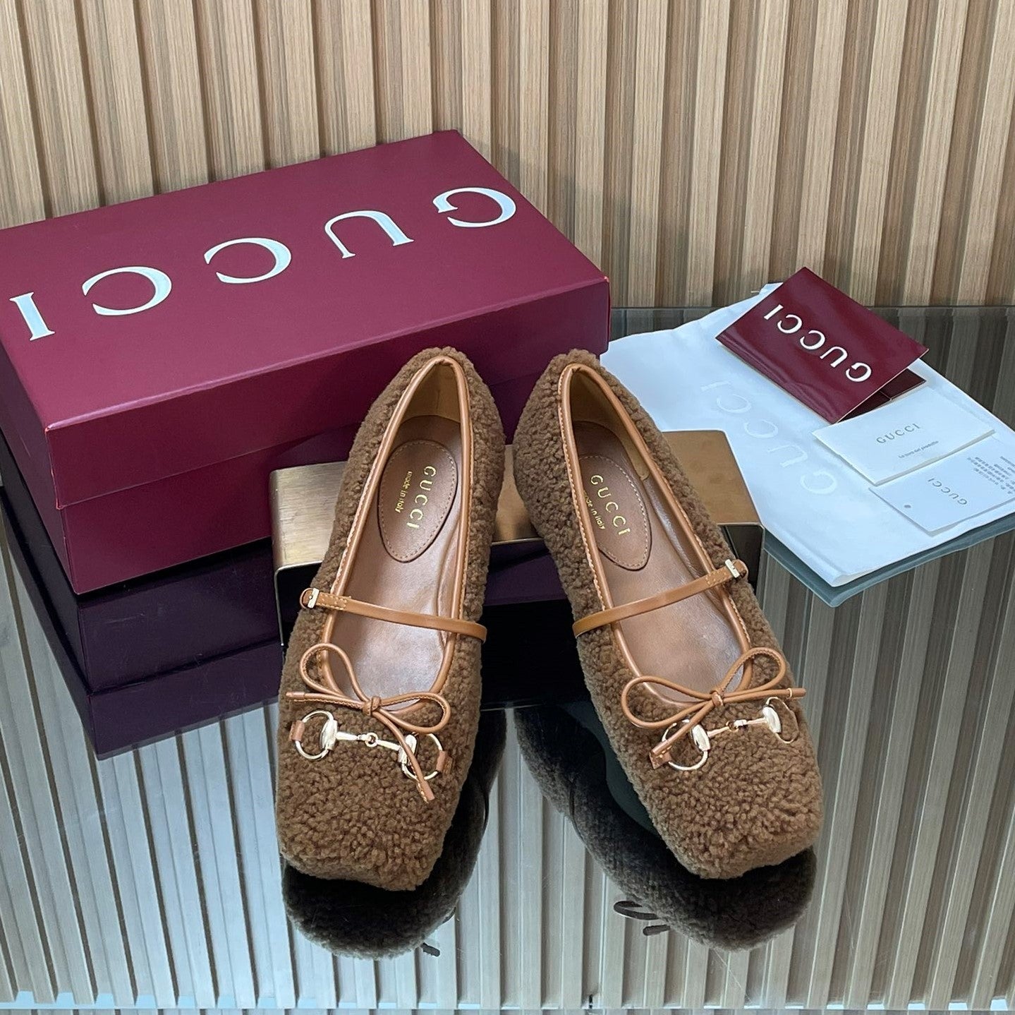 Gucci 26 Ballet Full Caramel Calfskin Wool 562992