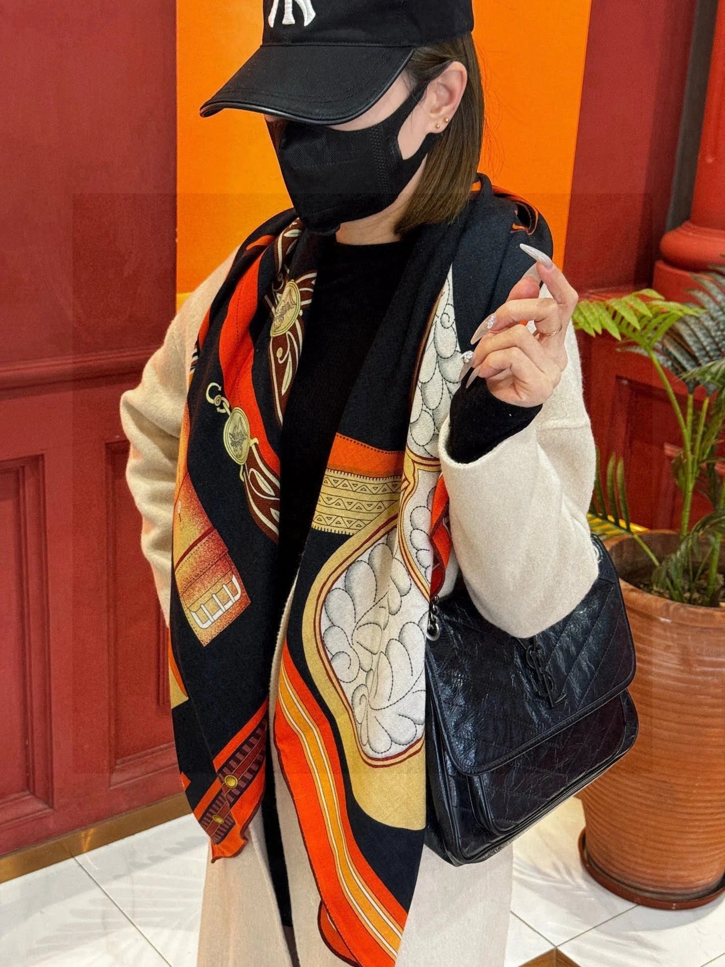 HERMES 25S SCARF 140 IN SILK AND CASHMERE 735807