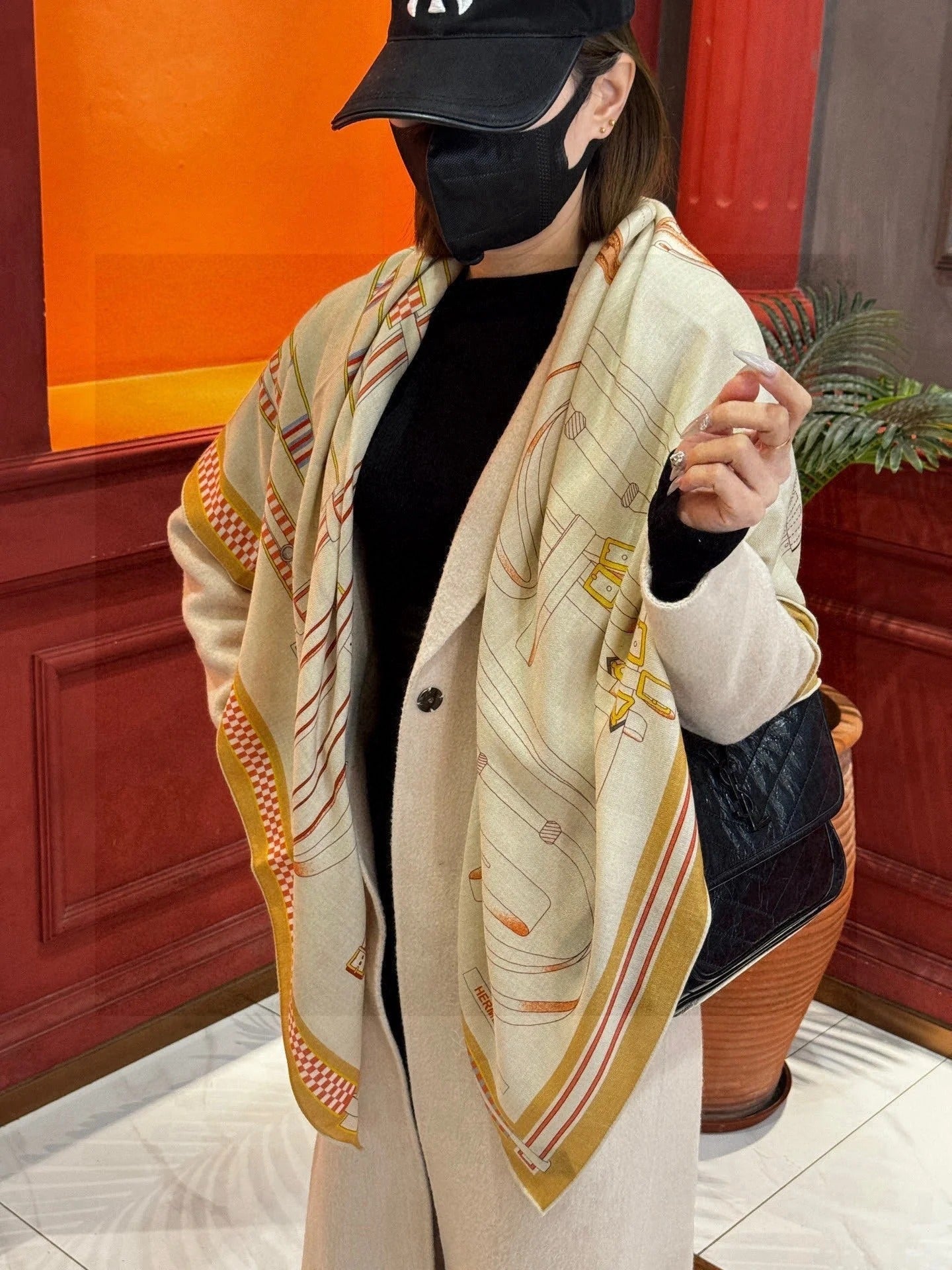 HERMES 25S SCARF 140 IN SILK AND CASHMERE 735808