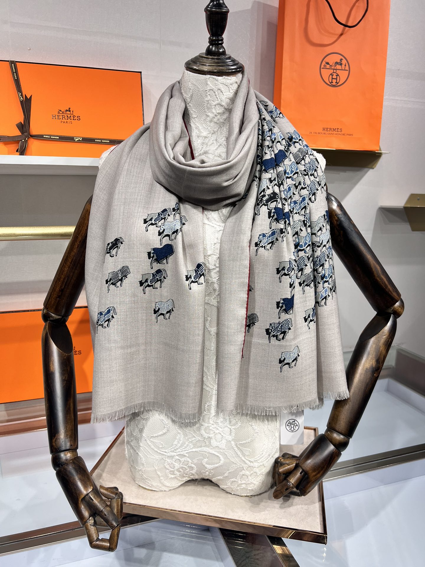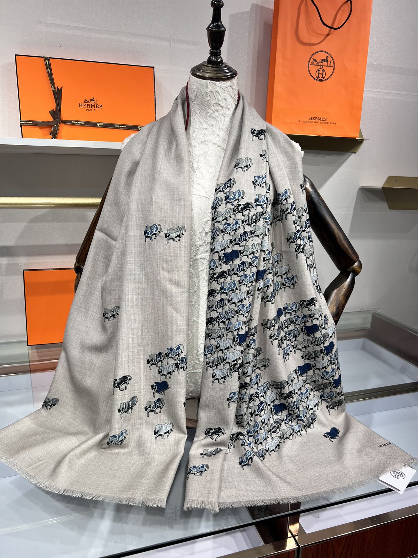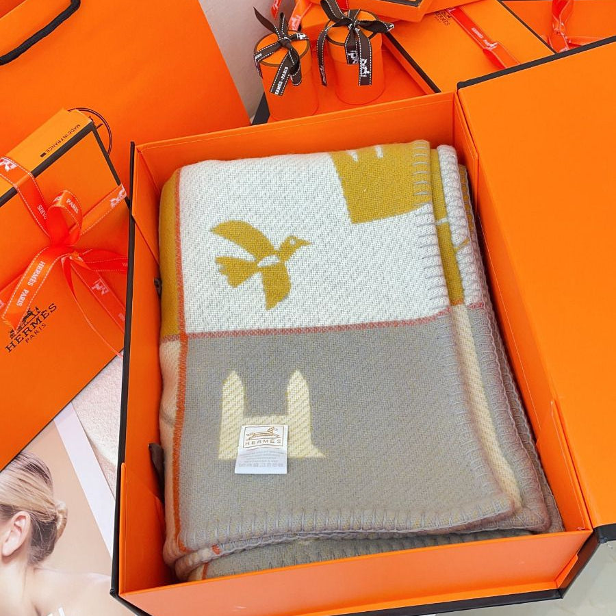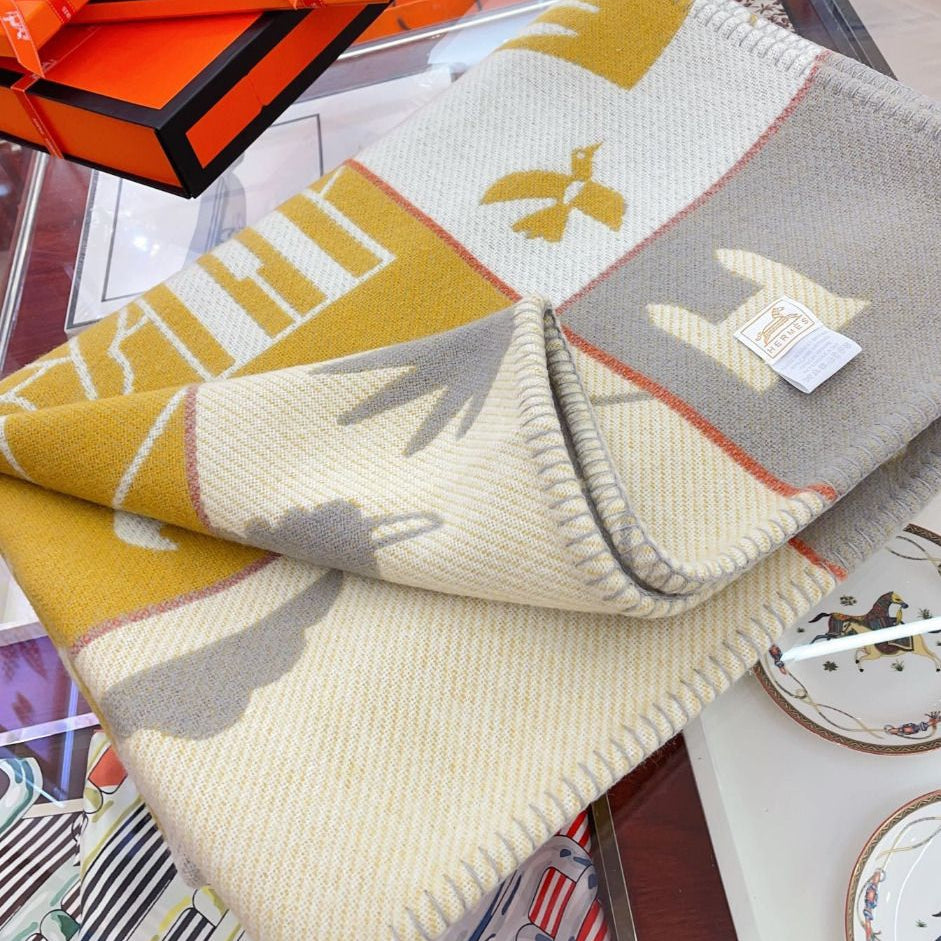 Hermes velvet scarf 185 CM Rice Gray Cotton Fabric