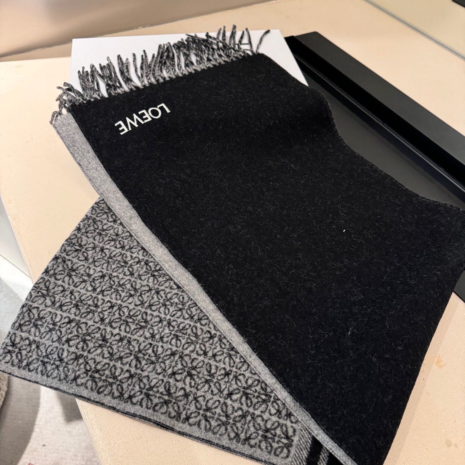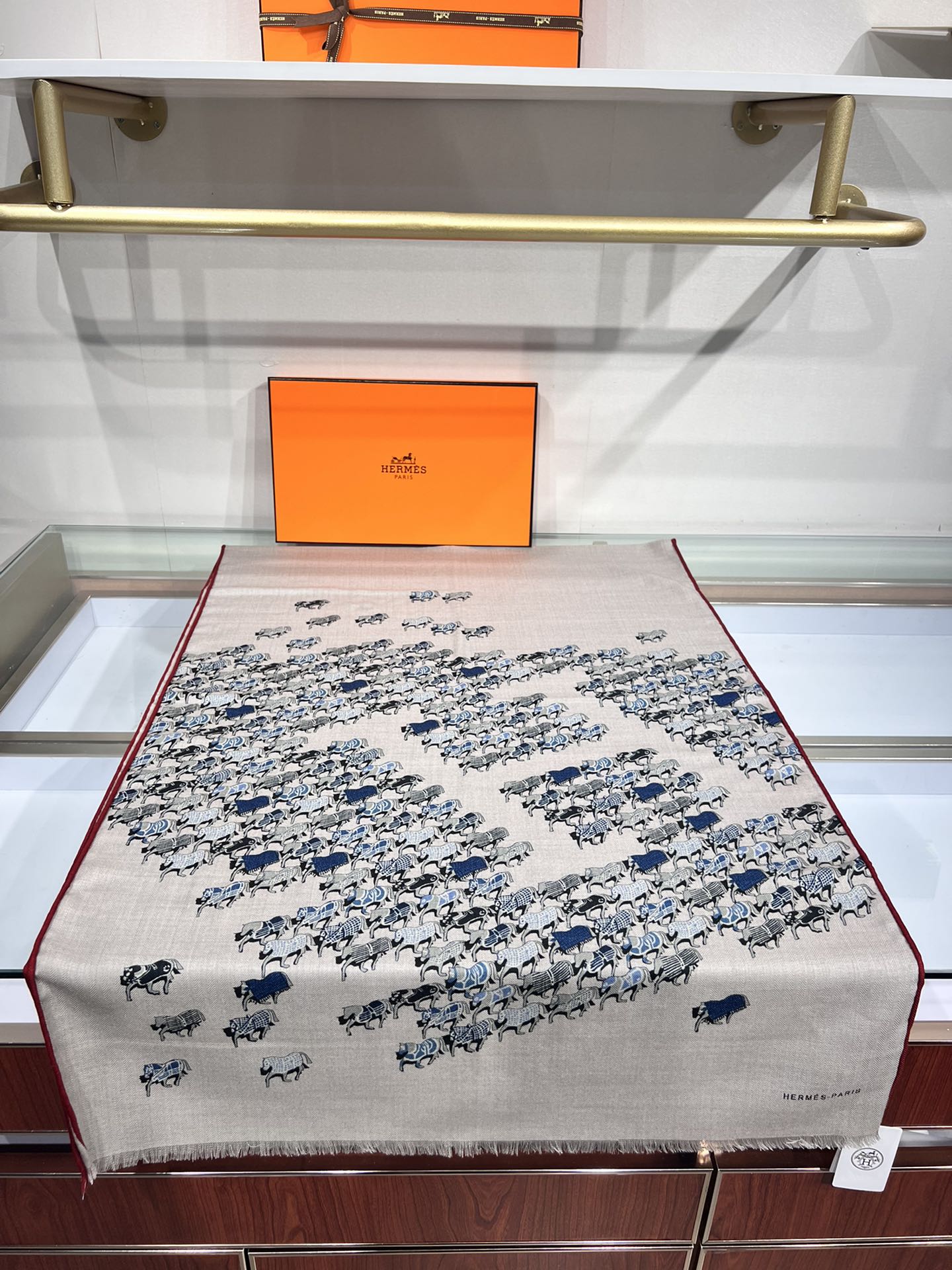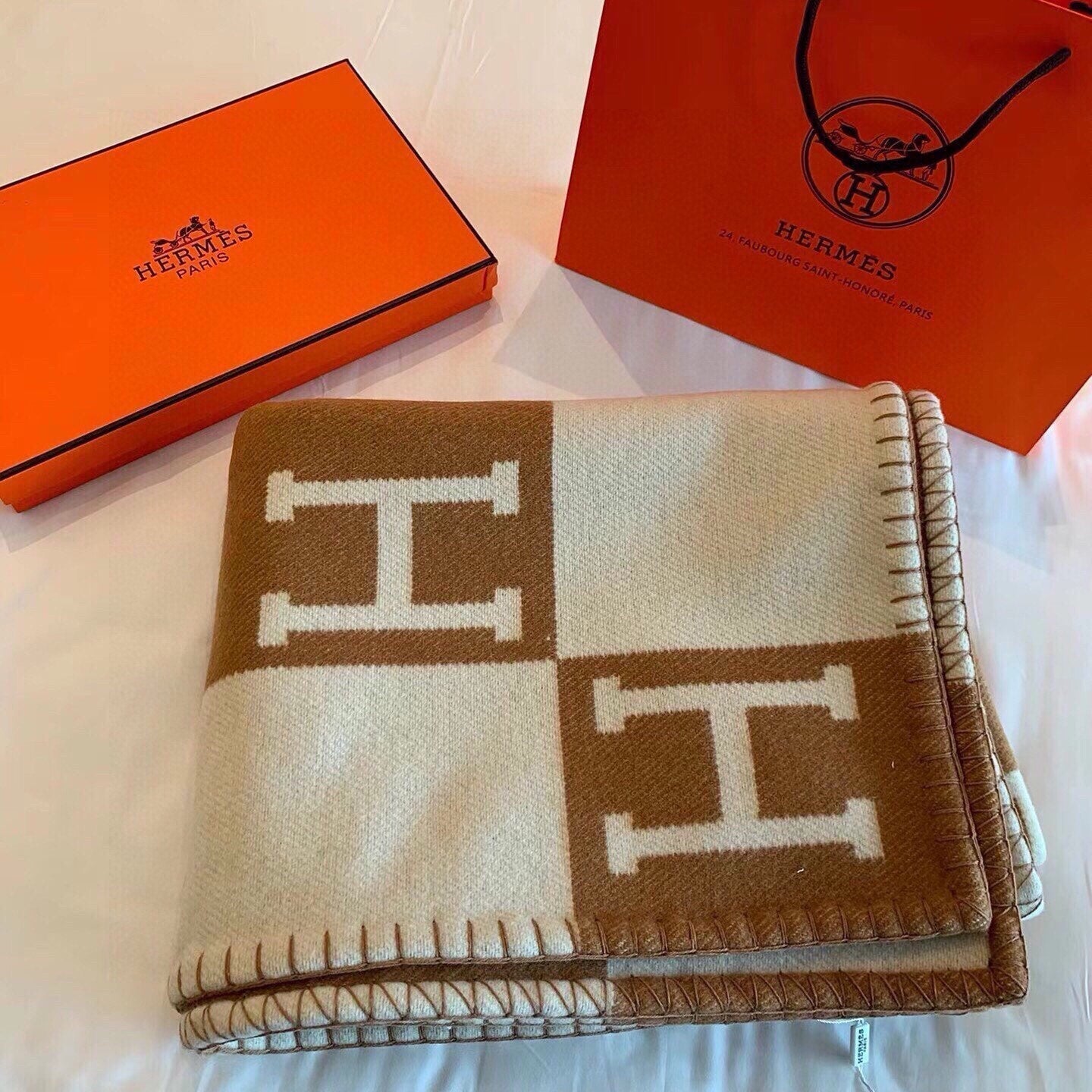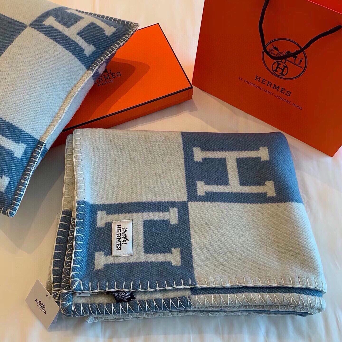Hermes velvet scarf 185 CM Rice Gray Cotton Fabric