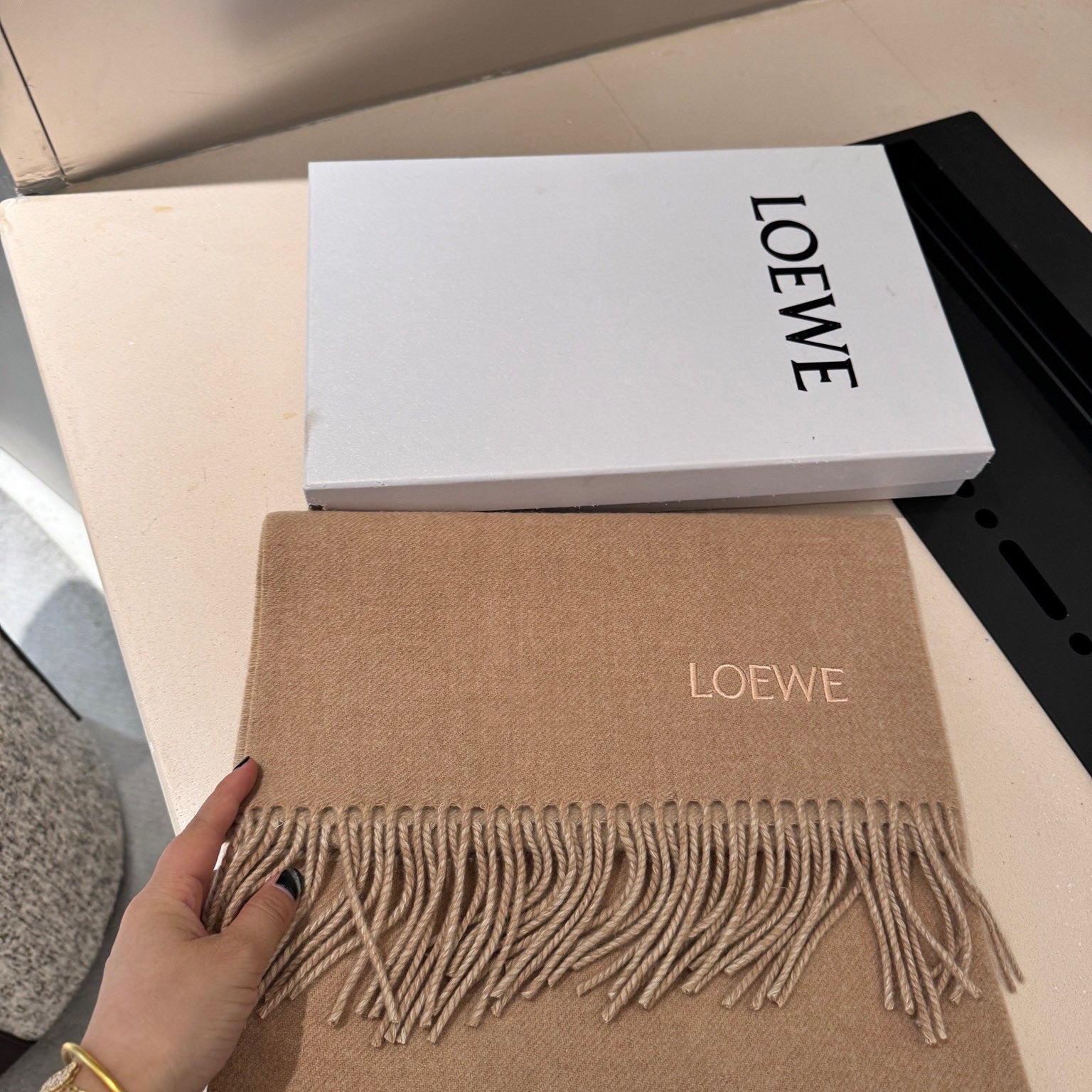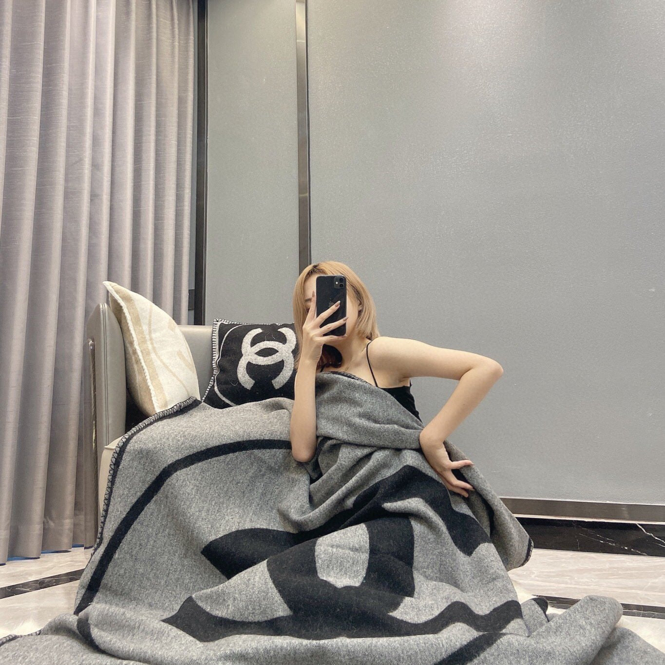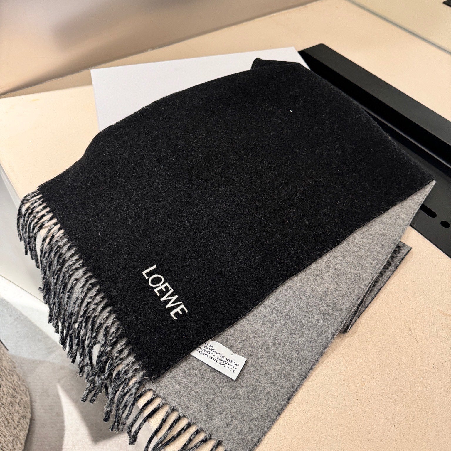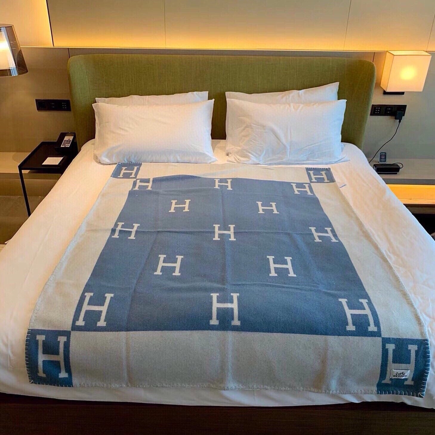 Hermes velvet scarf 185 CM Rice Gray Cotton Fabric