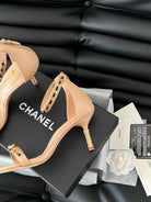 HIGH HEEL 7.5 MM SANDAL IN TAN BEIGE SHEEPSKIN WITH STICKERS