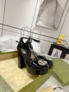 HIGH SANDAL SQUARE HEEL 12 CM IN BLACK CALFSKIN
