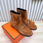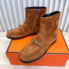 HM 25 Kelly Buckle Ankle Boots Rich Brown Silver Suede 513082