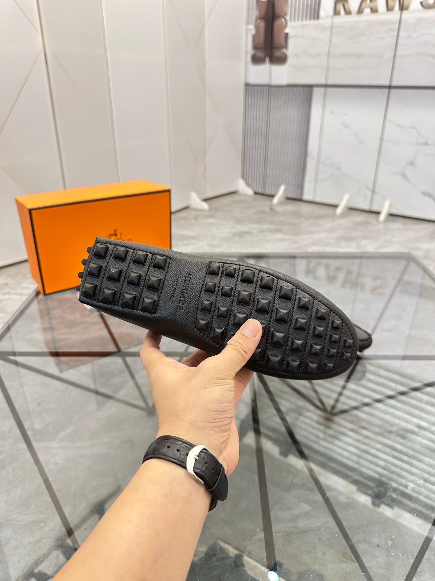 HM Men's Alessandro Loafer Black Orange Embossed Cowhide 697693