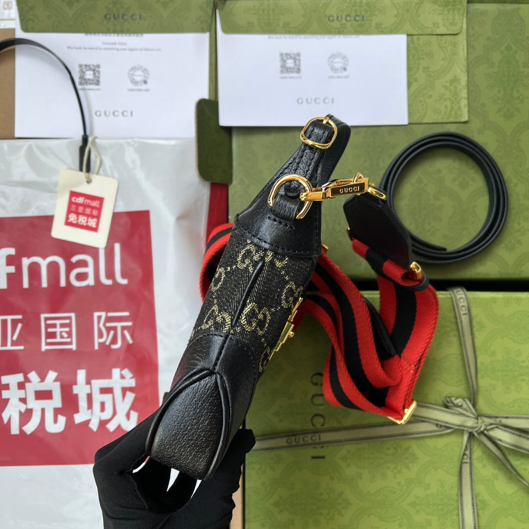 JACKIE 1961 SMALL HANDBAG 19 IN BLACK YELLOW DENIM AND BLACK CALFSKIN TRIM GOLD HARDWARE