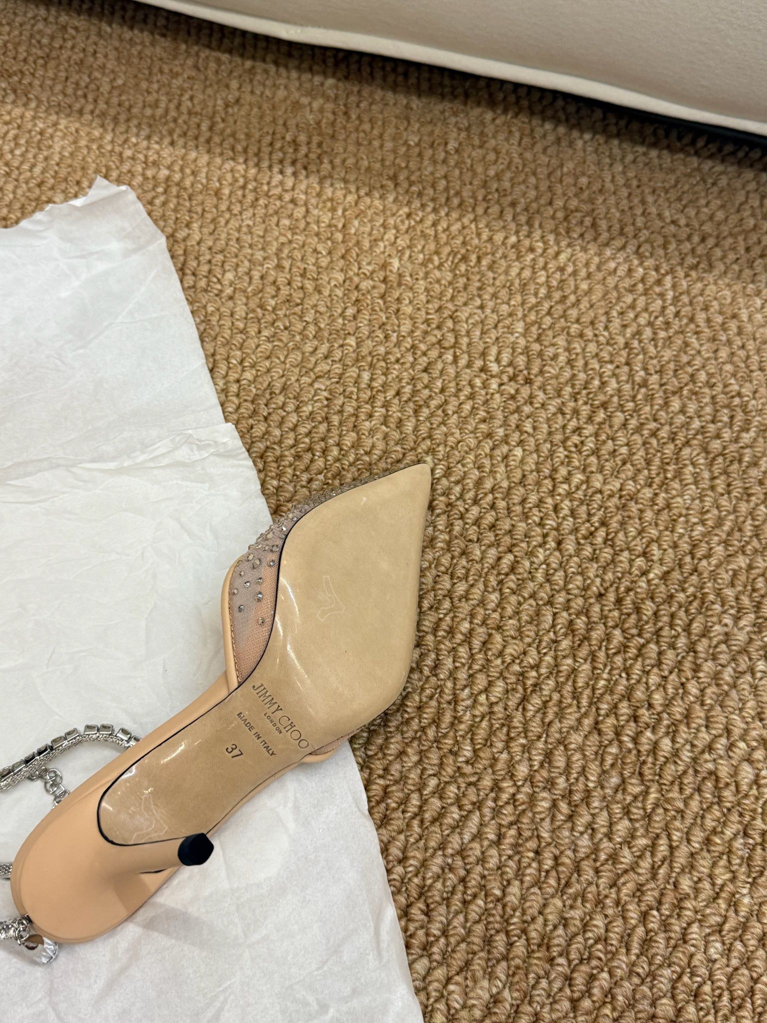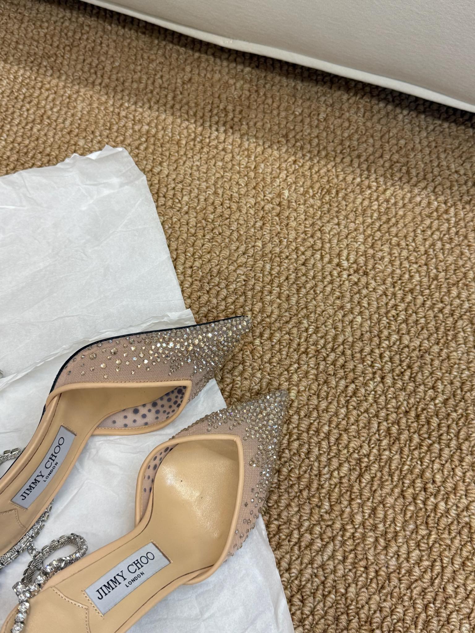 Jimmy Crystal-embellished Saeda Pumps 100mm Beige Mesh Drill 420168