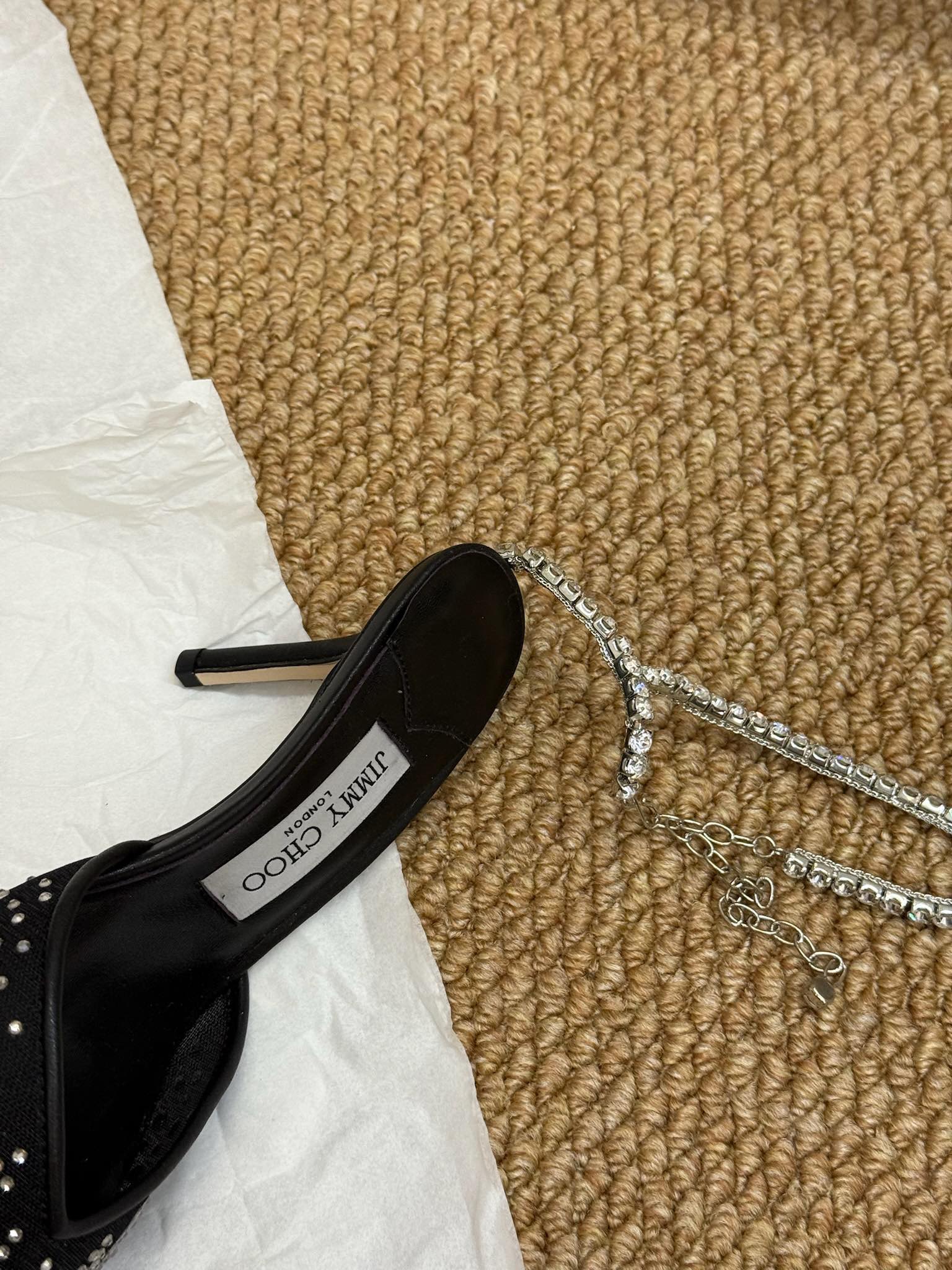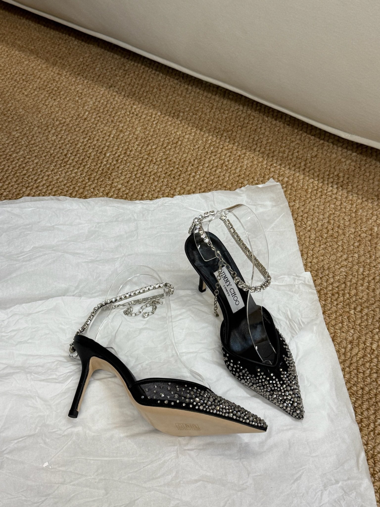 Jimmy Crystal-embellished Saeda Pumps 100mm Black Mesh Drill 420169