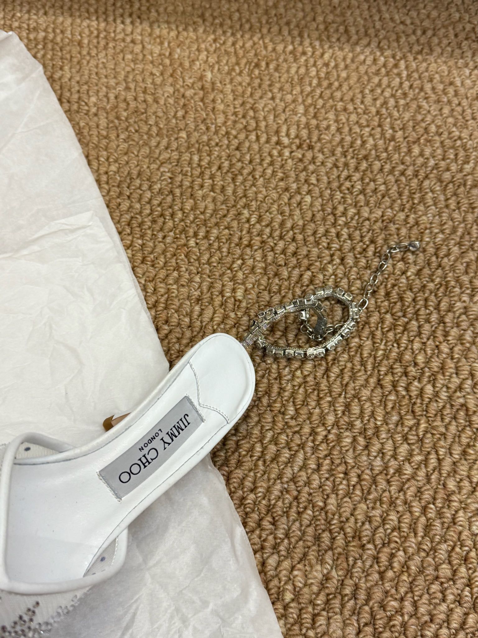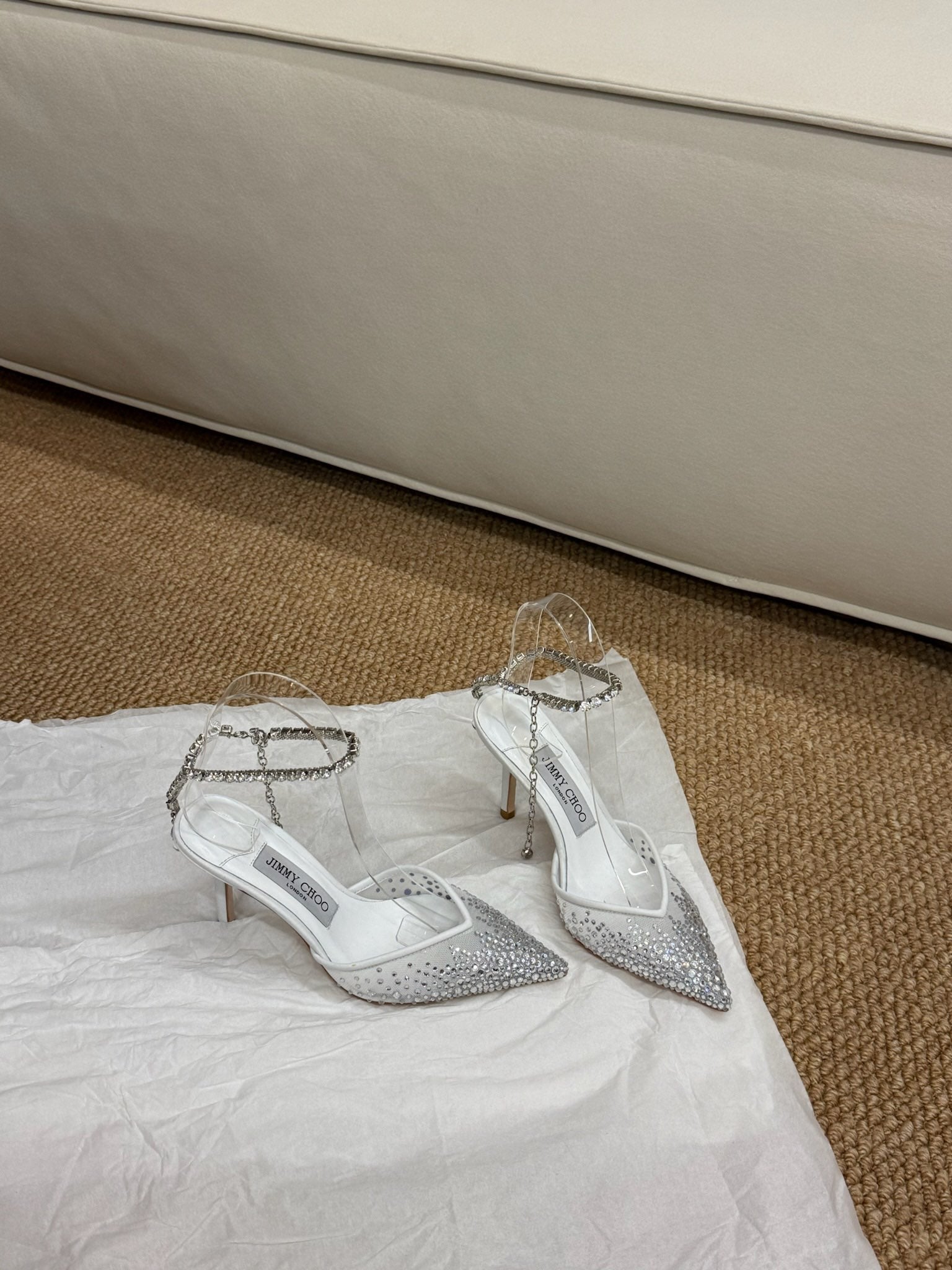 Jimmy Crystal-embellished Saeda Pumps 100mm White Mesh Drill 420170