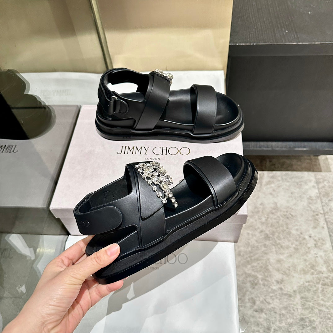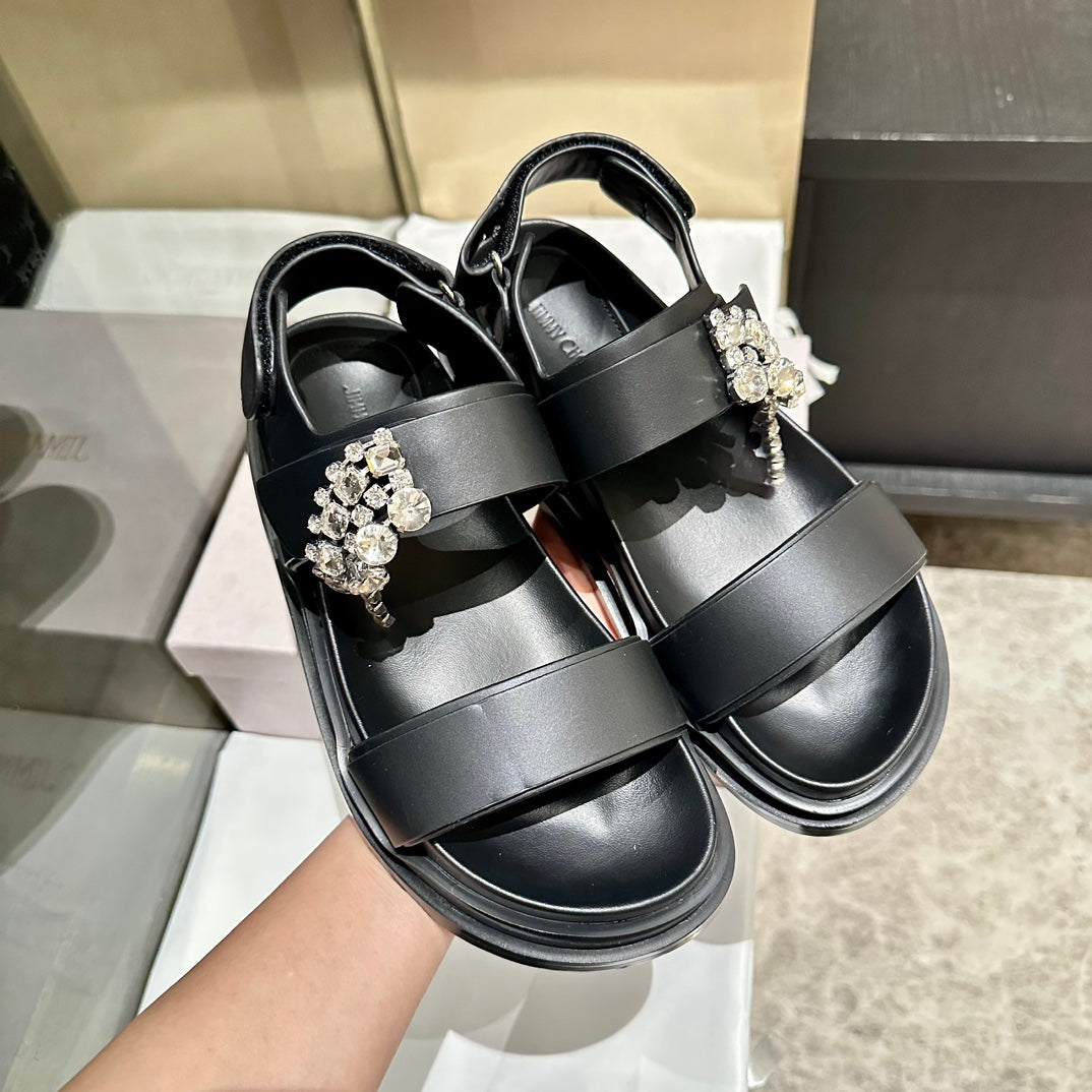 Jimmy Rhinestone Verity Sandals Black Leather 326426