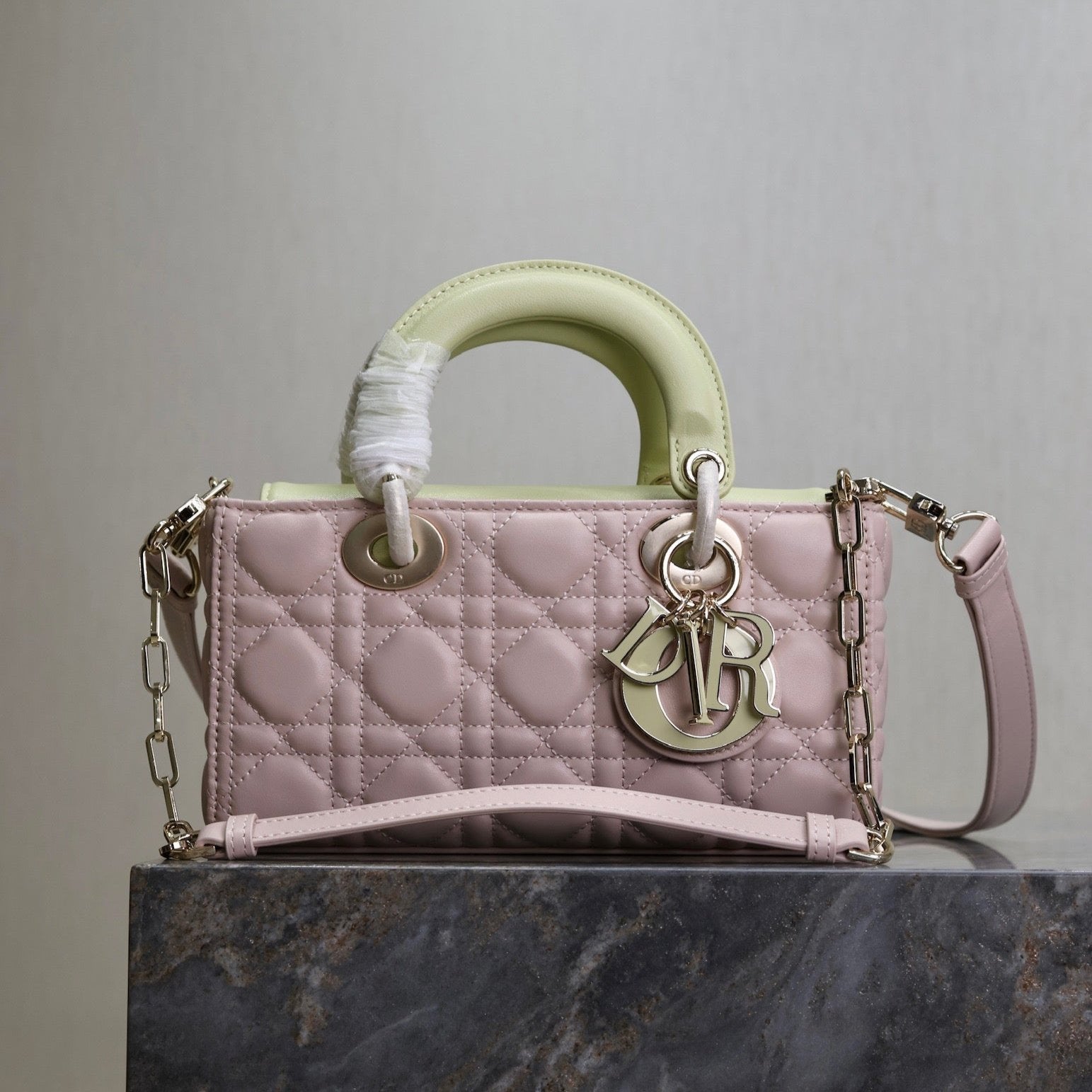 Lady D-Joy Bag 22 Pink Pale Green Lambskin