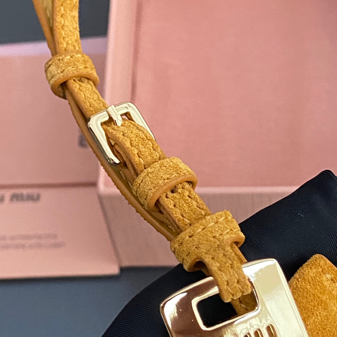 Leather Bag Charm With Key Yellow Orange Suede 240341