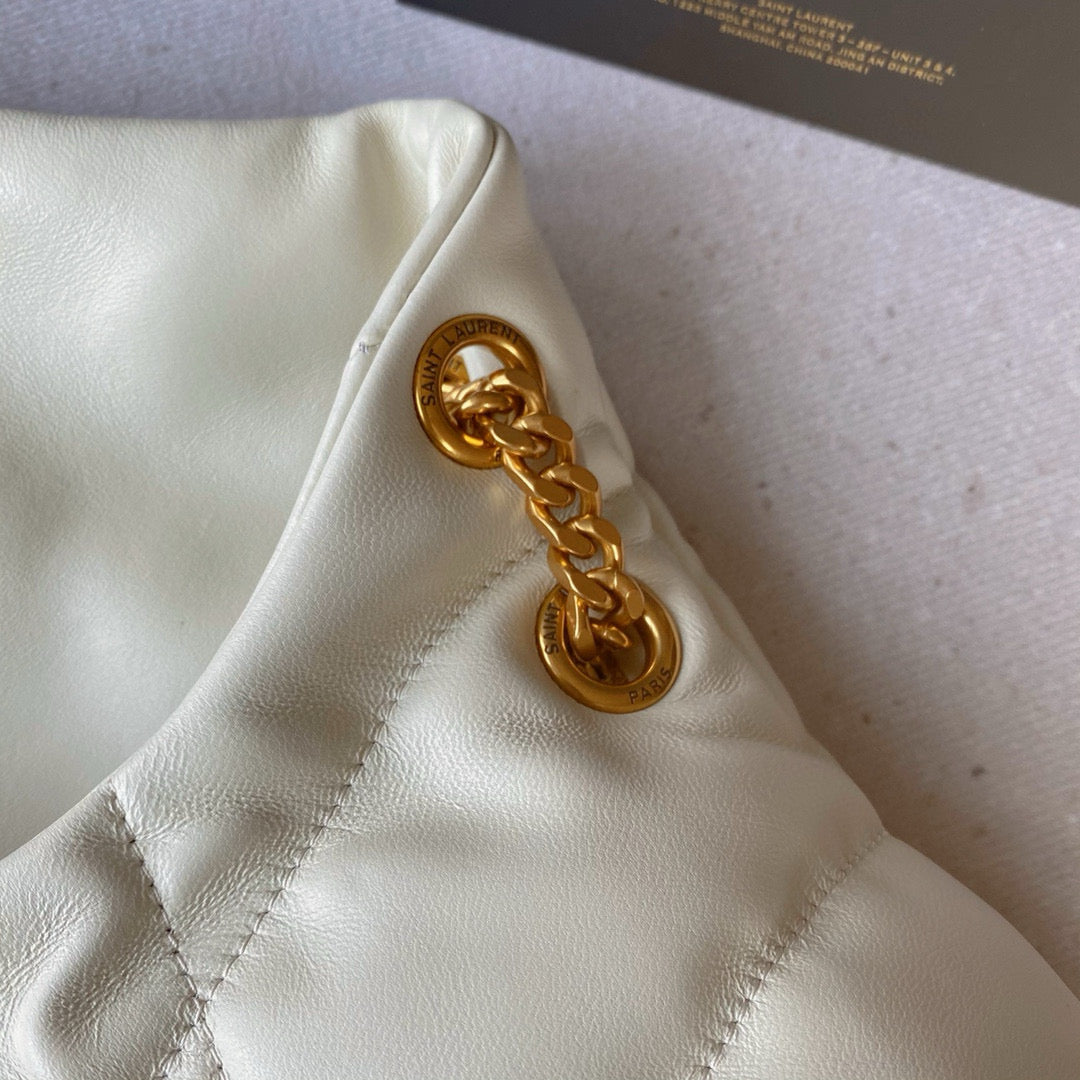 Loulou Puffer 35cm White Quilted Lambskin Bag Ghw