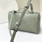 LP Extra Bag 19cm Ostrich Pattern Olive Gray Calfskin Silver Hardware