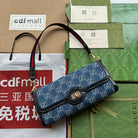 LUCE SMALL SHOULDER BAG 27 IN BLUE EMBOSSED DENIM AND BLACK CALFSKIN TRIM GOLD HARDWARE