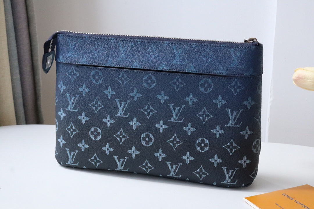 LV Pochette Voyage Souple Khaki Blue Monogram Canvas 224142