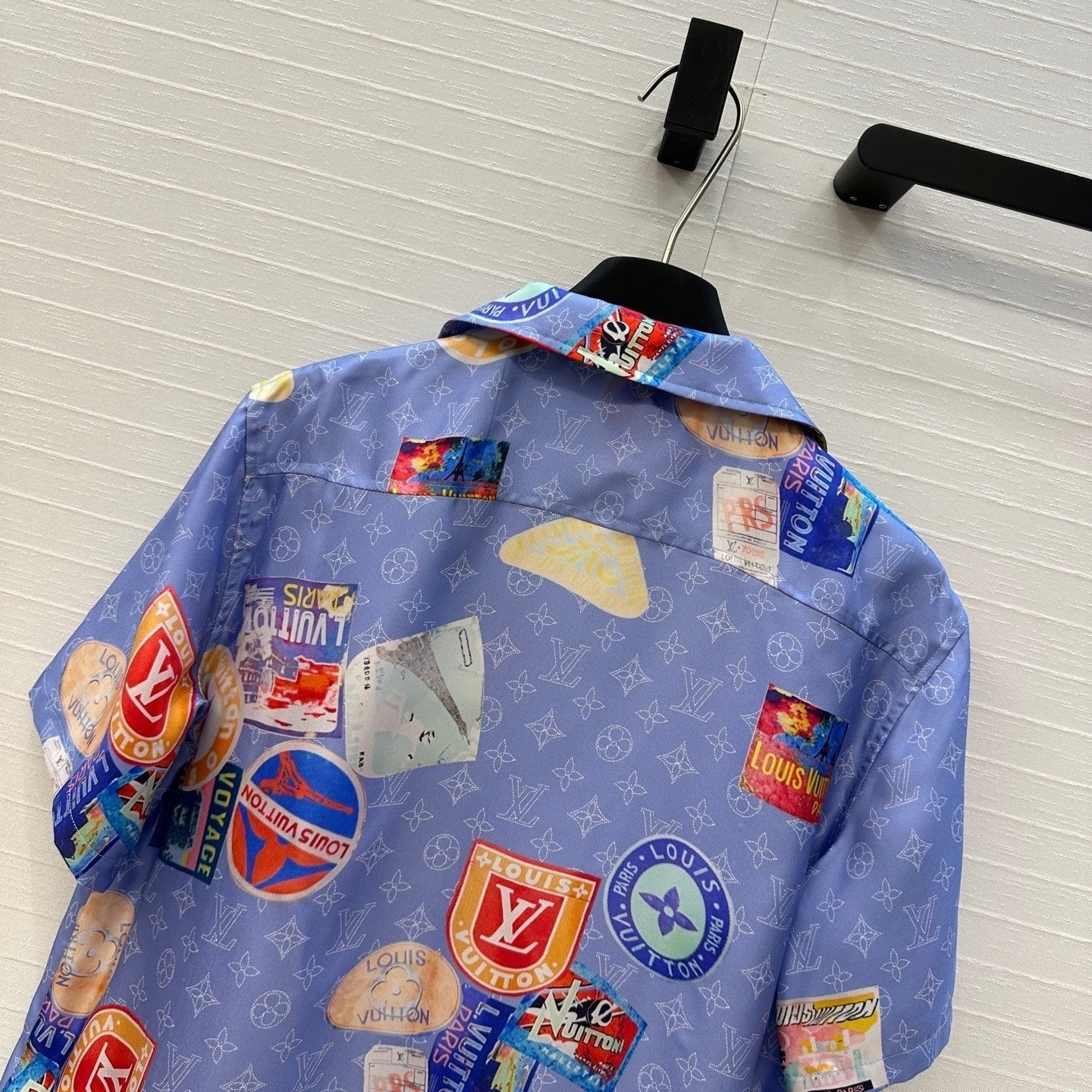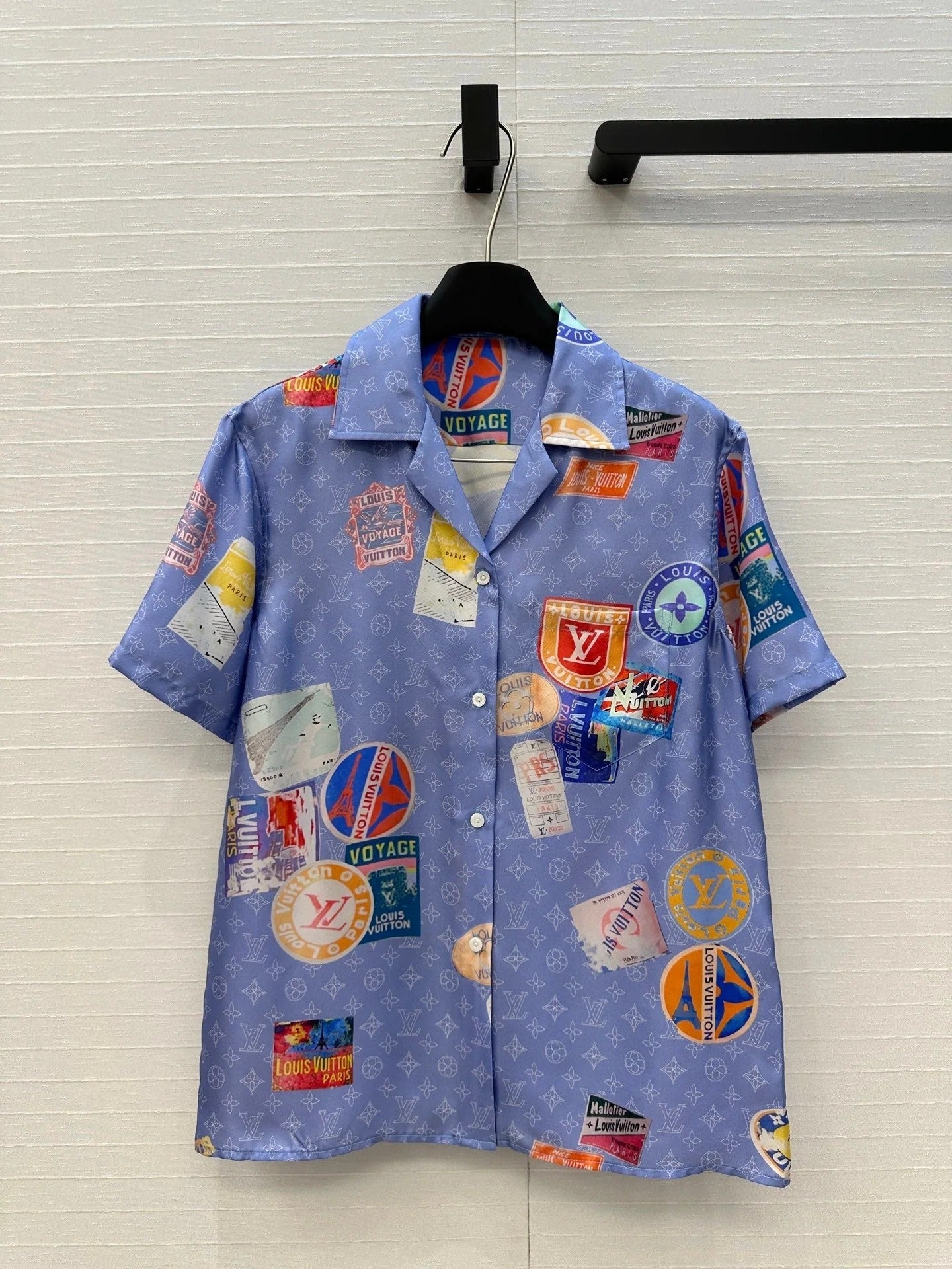 LV SHORT-SLEEVE PRINTED SILK BLOUSE 268222