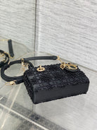 MINI LADY BAG 16 IN BLACK SATIN AND CALFSKIN WITH BEADED DESIGN