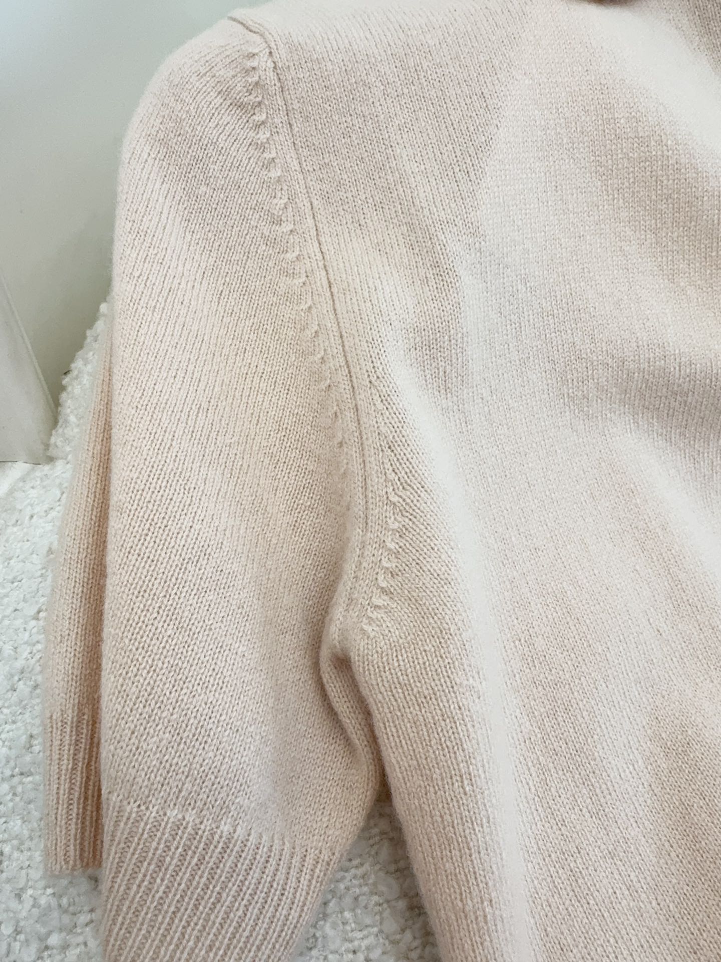 Miu Miu 25 Striped Polo Short-sleeved Sweatshirt Beige Cashmere