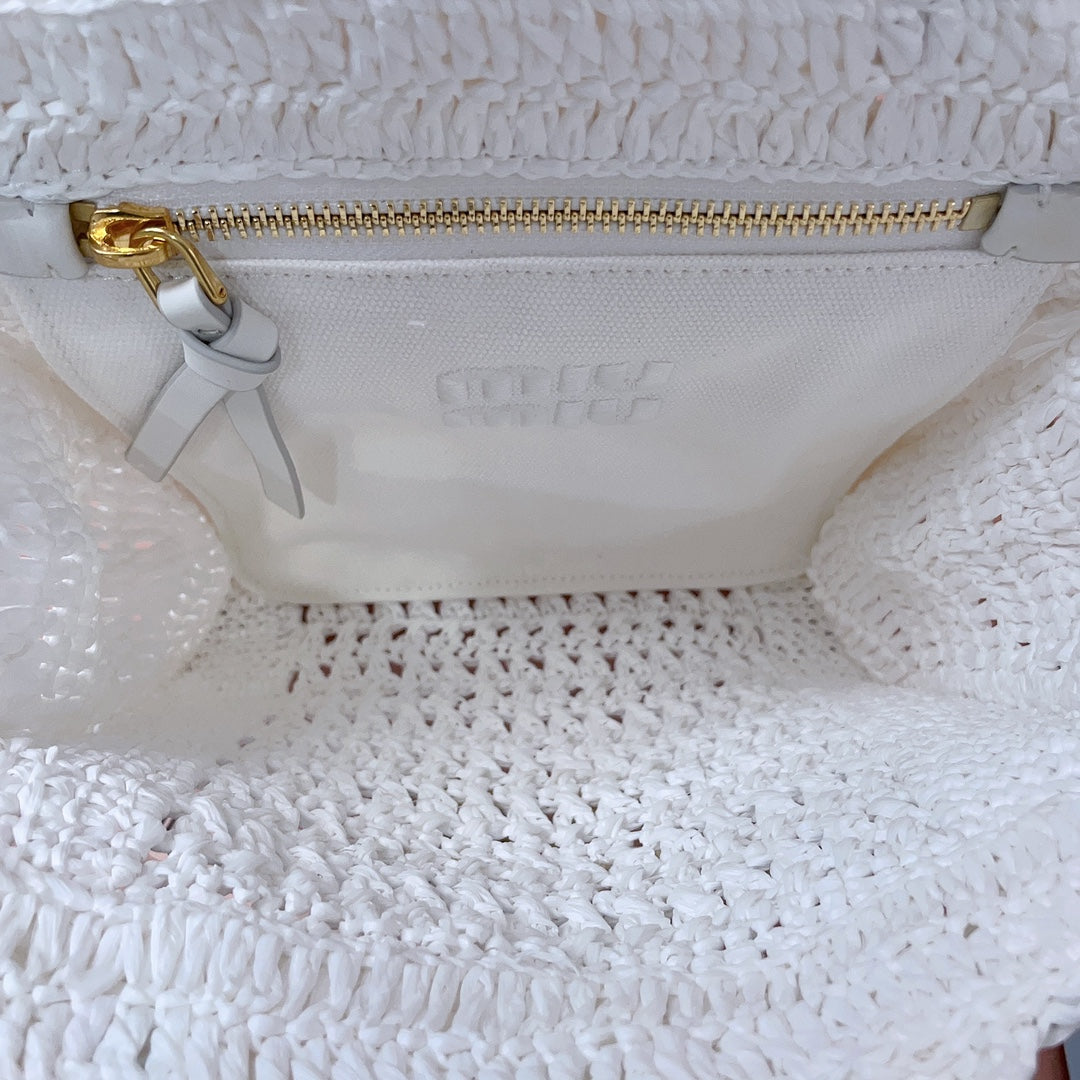 miu tote bag 22cm white woven fabric