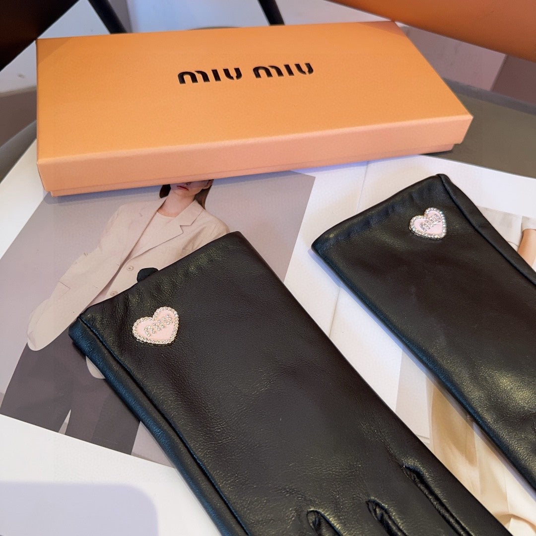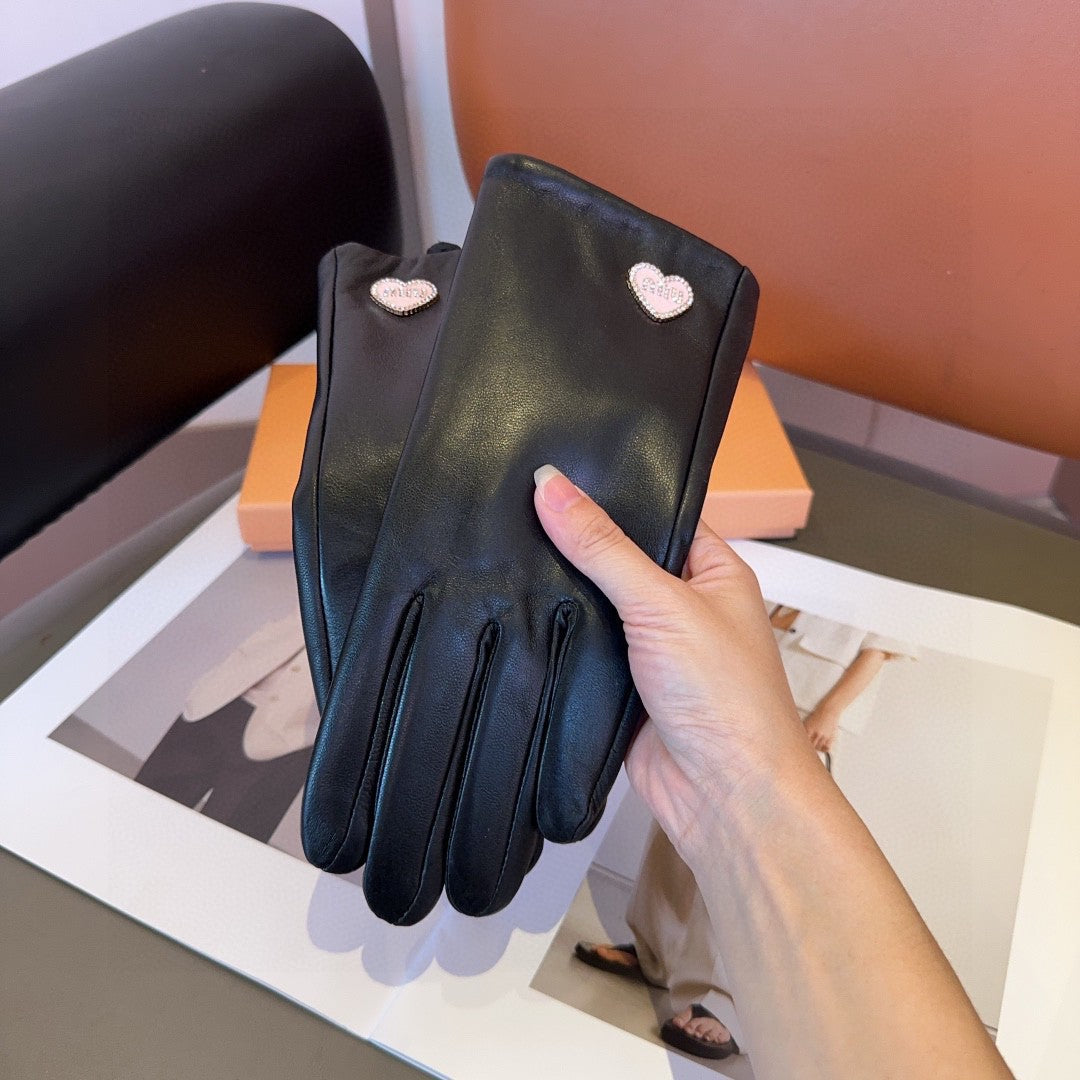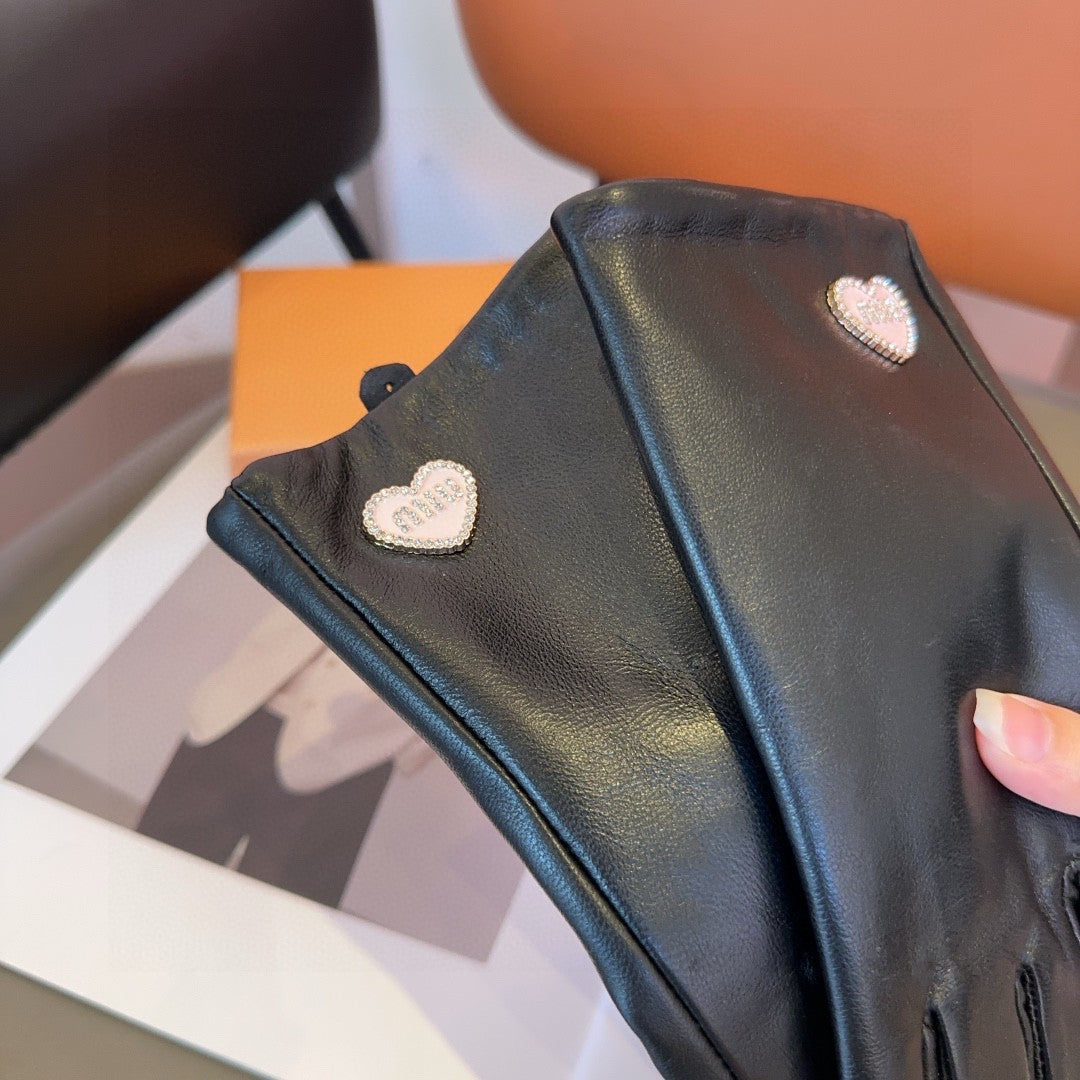GLOVES ATTACHED HEART ICON IN BLACK LAMBSKIN 466814