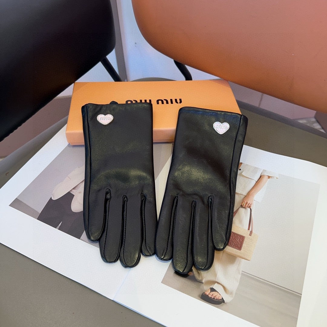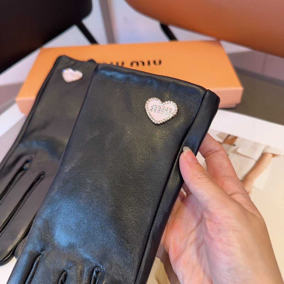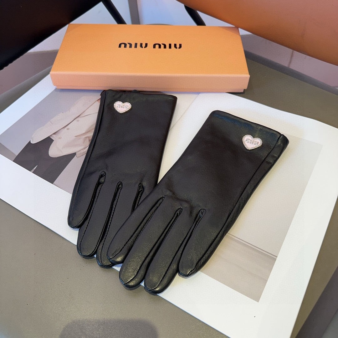 GLOVES ATTACHED HEART ICON IN BLACK LAMBSKIN 466814