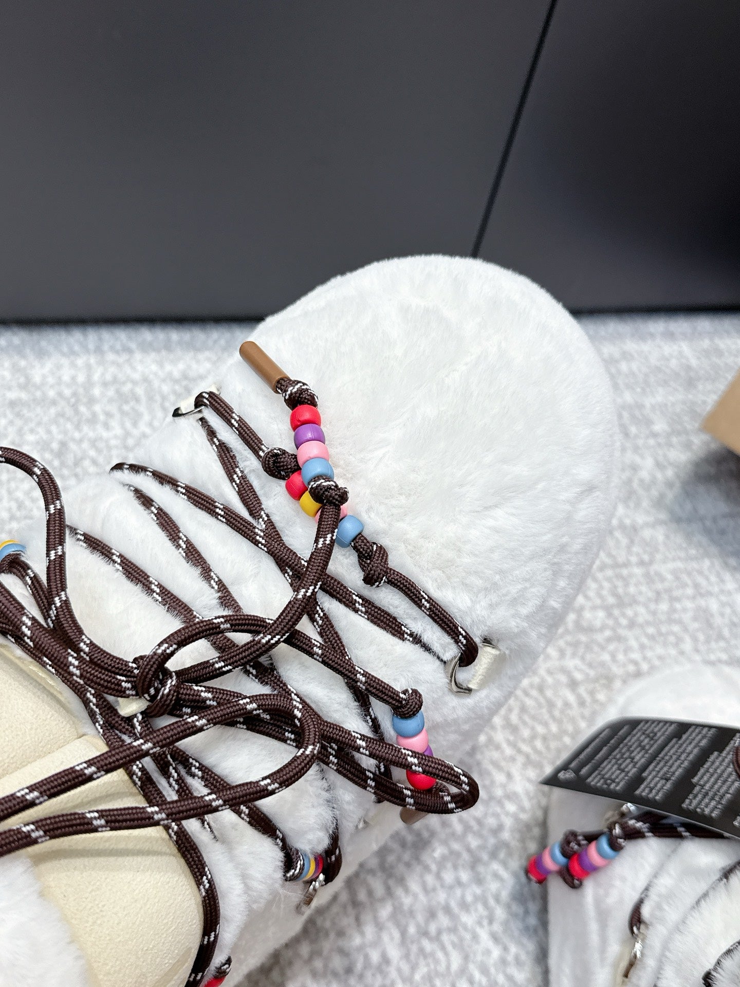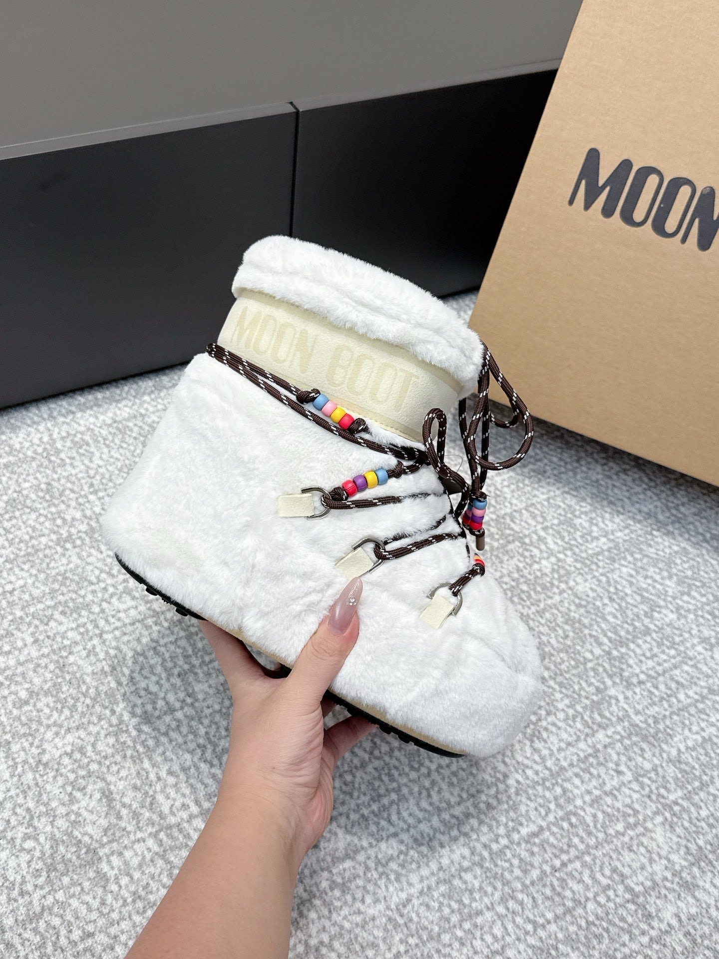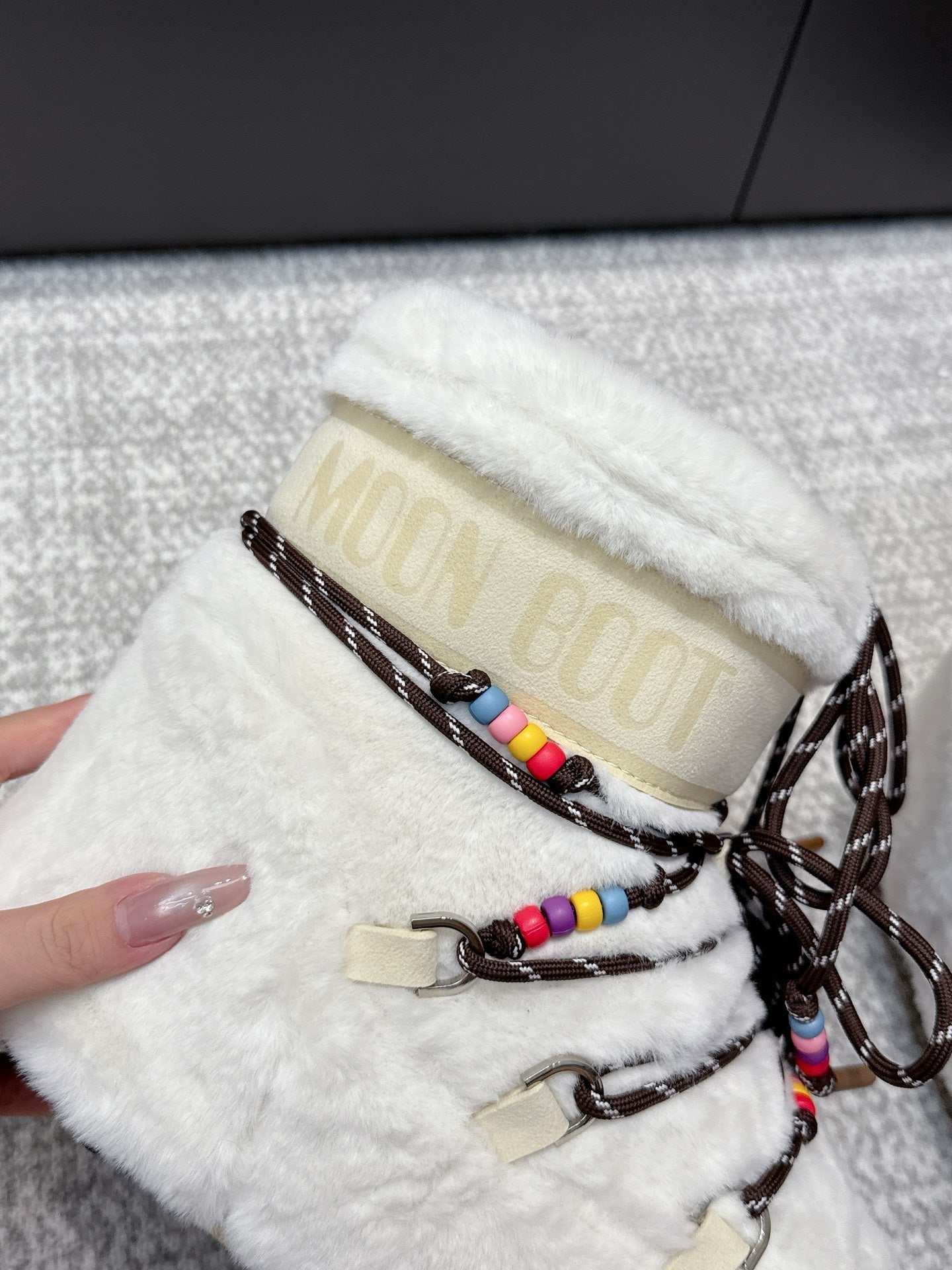 Moon Boot Icon Low Faux Fur White with Beaded Brown Laces 515590