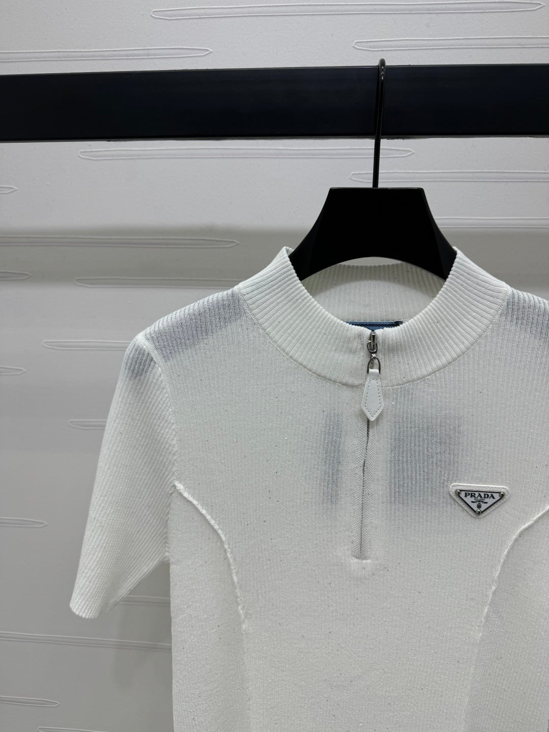PRADA MOCK NECK SHORT-SLEEVE KNIT TOP WHITE 274815