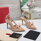 ROCKSTUD BOW SLINGBACK NUDE TAN PATENT LEATHER PUMP 95MM