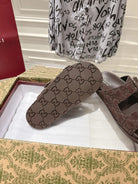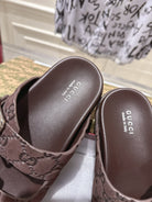SANDALS IN NAVY BROWN SUEDE EMBOSSED LOGO SILVER HARDWARE