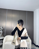 Scarf 190 CM Light Brown Mix White Wool Soft