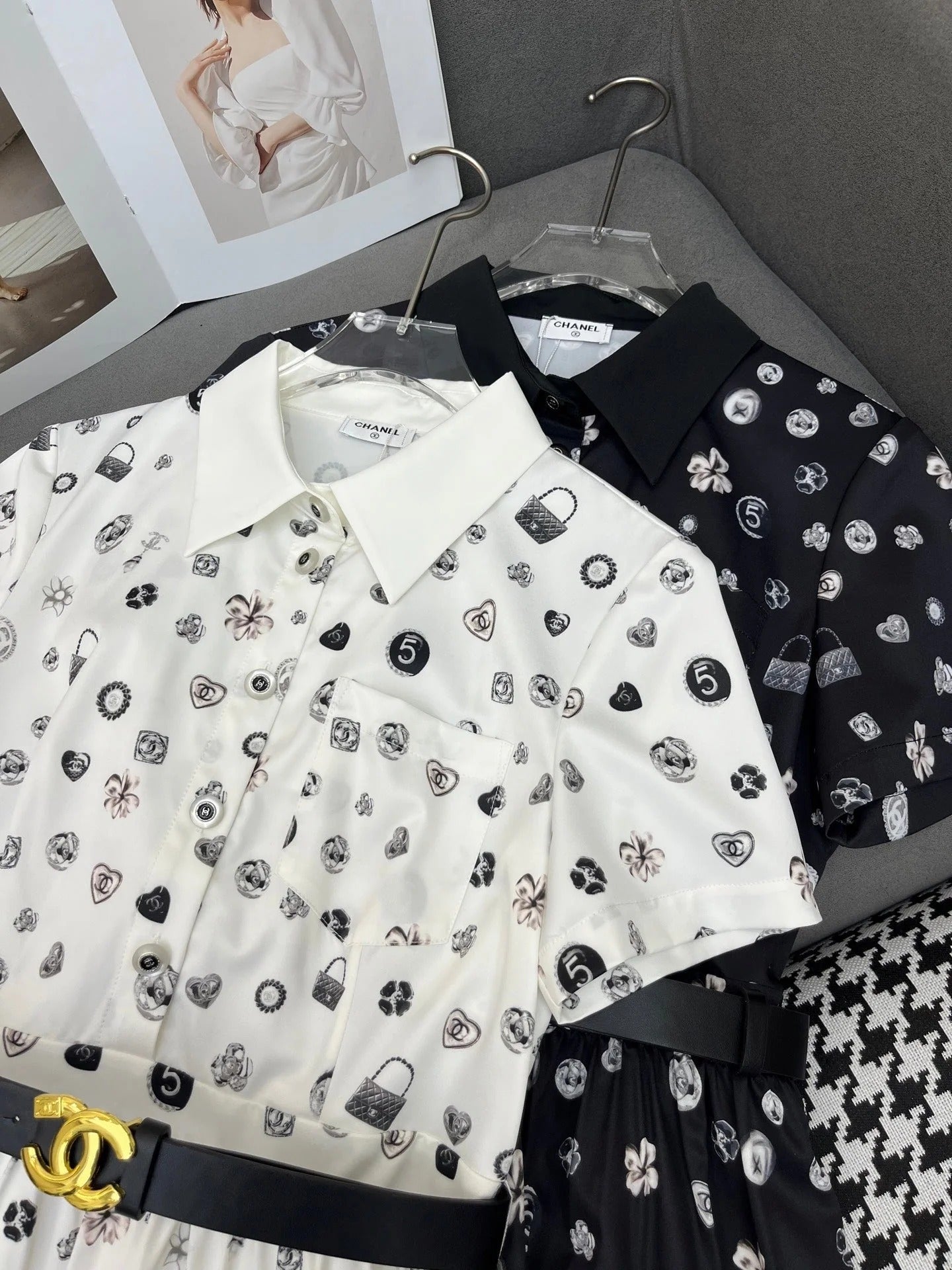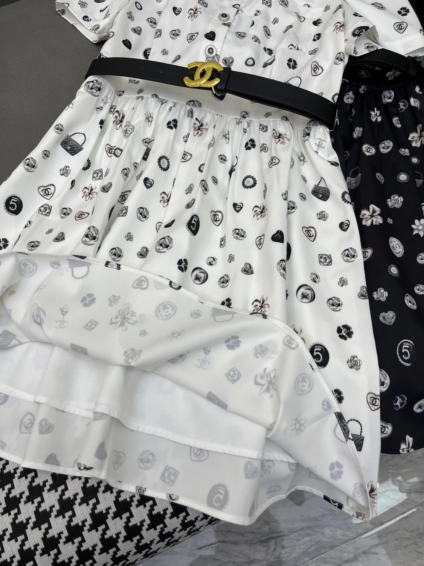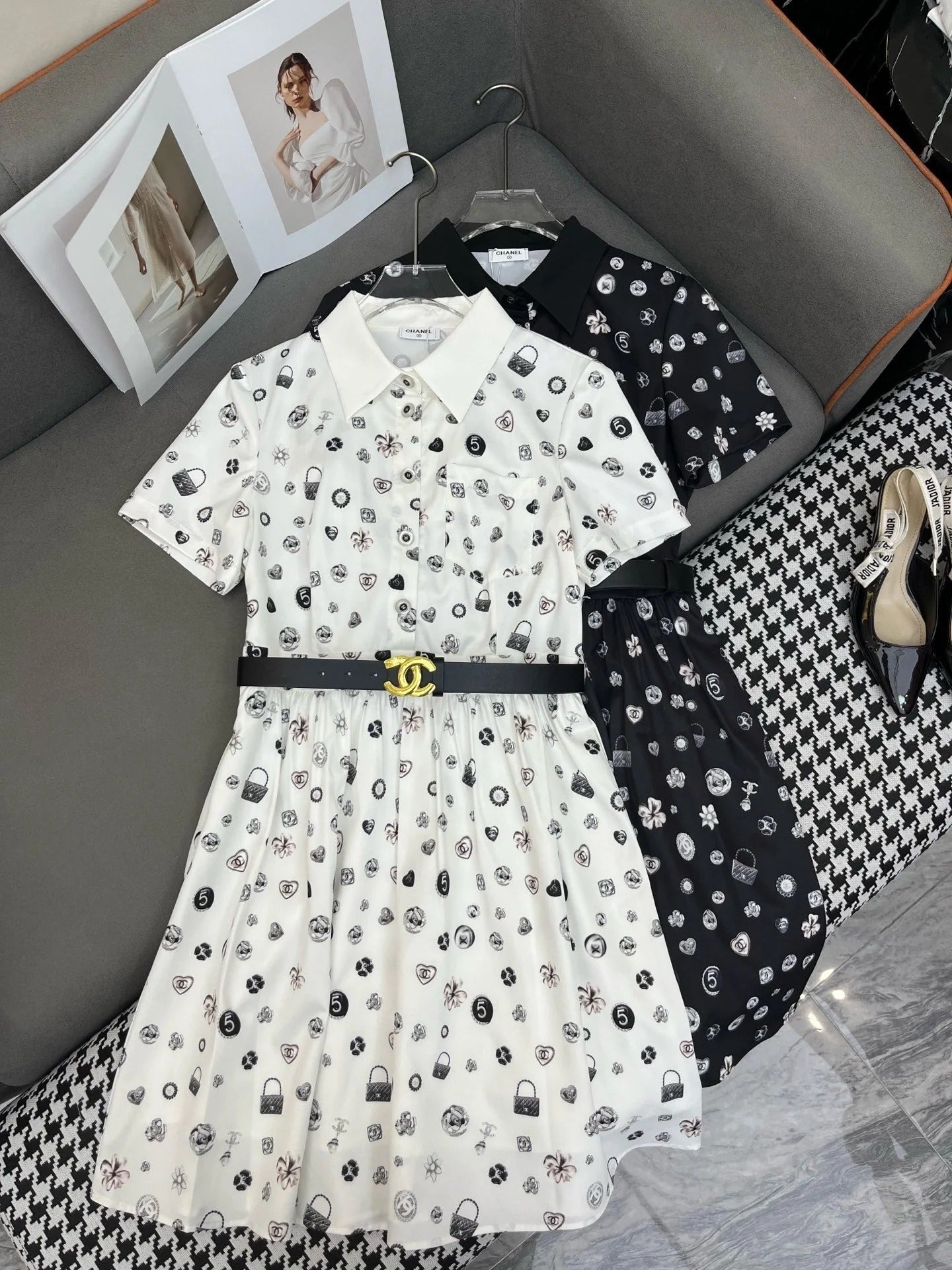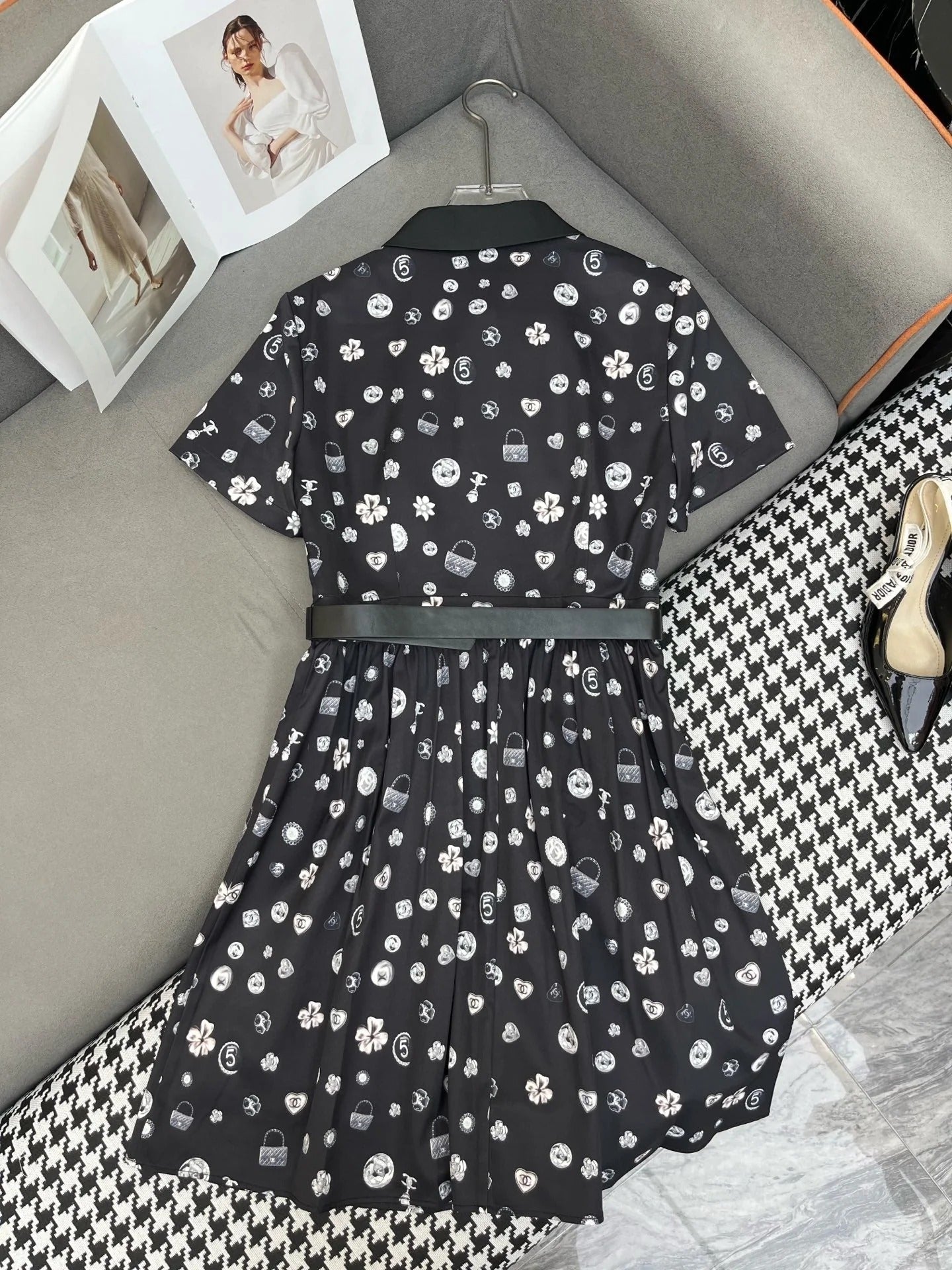 SHORT-SLEEVE BUTTON-DOWN DRESS WITH SIGNATURE LOGO BELT