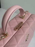 SMALL BOX BAG 18 IN BALLERINA PINK LAMBSKIN GOLD HARDWARE