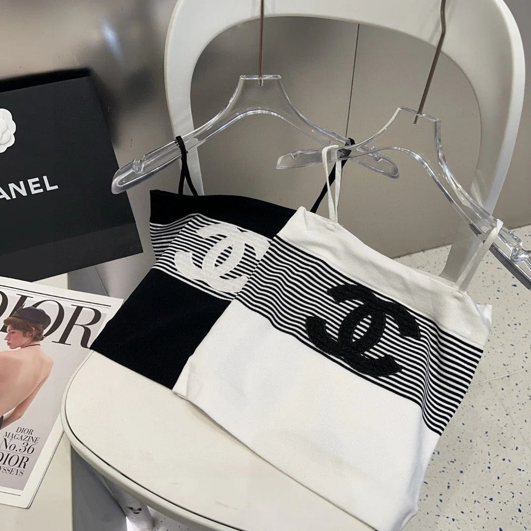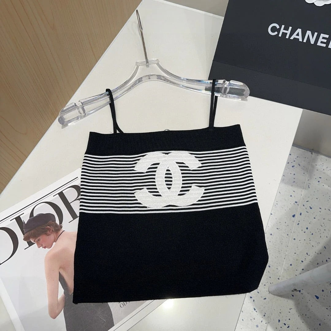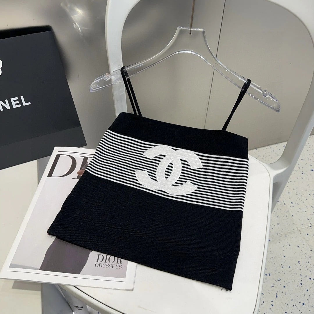 STRIPED CAMISOLE 610345 IN BLACK AND WHITE COTTON RIBBED
